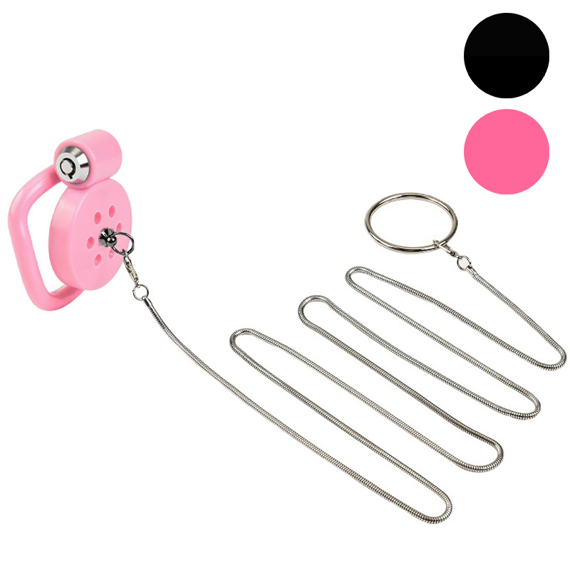 This flat chastity cage is made from high-quality plastic and comes in colors such as pink and black. The design is very unique, with a central hole surrounded by six additional holes, allowing you to attach chains or insert a catheter, adding more fun and control.Material:ABSSize: Size:Cage: 1.1 * 3.8 cm/0.43 * 1.49 inchWeight: 75 g/0.16 lb/2.6 ozRings: 38mm(1.49″), 42mm(1.65″), 45mm(1.77″), 48mm(1.88″), 52mm(2.04″)