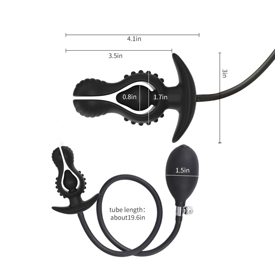 The design of the anal toy has an inflatable ball, the maximum size can reach 8 cm. It can give you a super satisfying feeling of fullness and pleasure. There are two leaf-shaped massage points on both sides of the ball, covered with small protrusions to bring a lot of pleasure!Function: ?Inflatable Butt PlugColor: BlackSize: 10.5 * 4.5 cm/4.1″ * 1.7″Max Dia: ?8 cm/3.1″Tube Length: 50 cm/19.6″Net Weight: 132 g/0.29 lb/4.6 ozPower: NoMaterial: ABS + SiliconePackage: OPP BagFurther: Waterproof