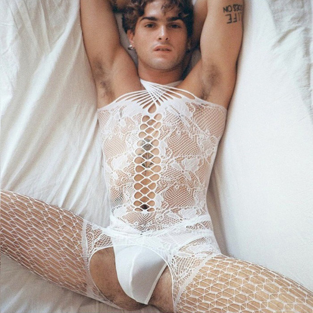 Men’s sexy stockings with high elasticity design. The top stretches freely, is soft and sheer, and sits comfortably next to the skin at the tight waist. The hidden areas are designed as openings, giving a feeling of rebellion and love waiting to be conquered.