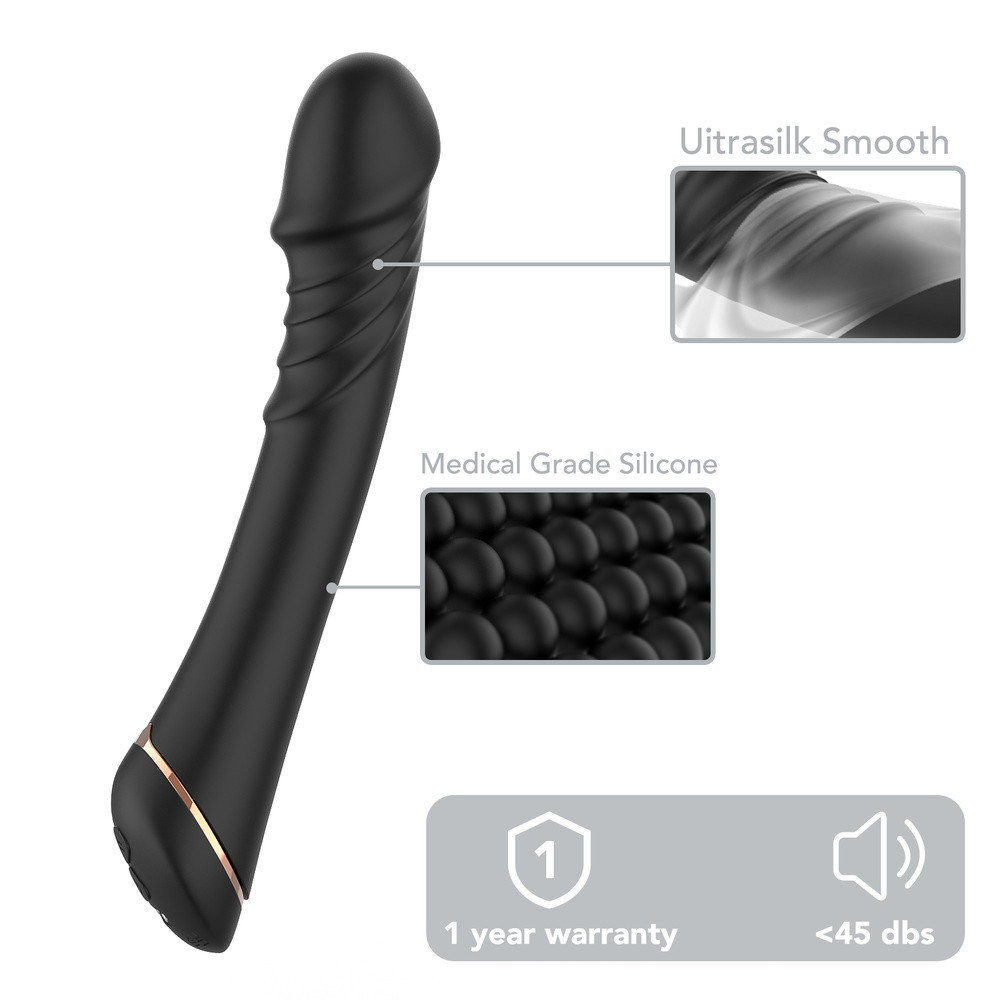 The ergonomic design of this G-spot vibrator gives a sensation of custom-made pleasure. Its realistic glans massaging head, curved angle for easy G-spot access, raised ridges for heightened pleasure, and button angle for solo play control make for a perfect climax.
