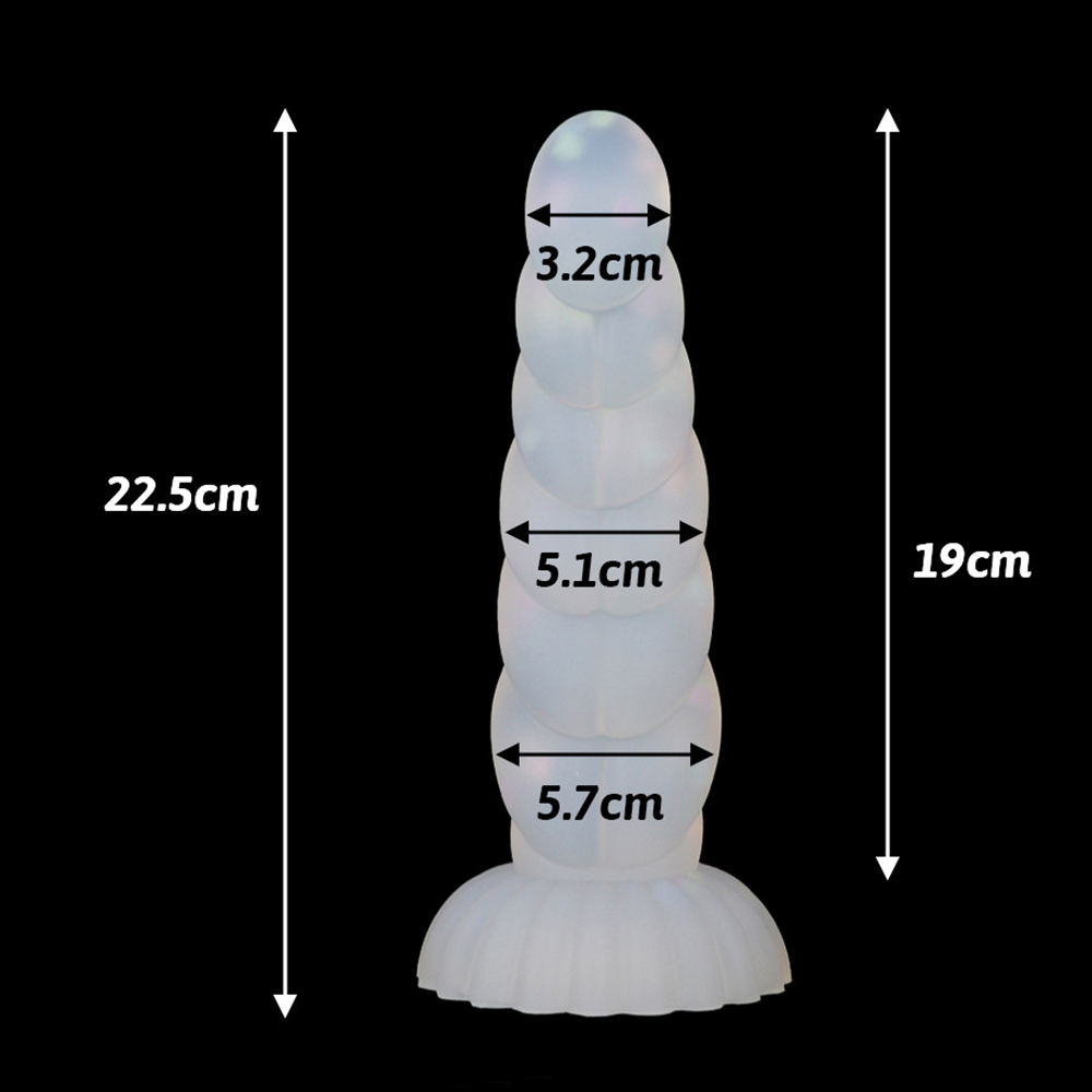 Small, translucent dildo with small colored gummies that make it look really cute and fun. This dildo is small in size, perfect for beginners, to use both anally and vaginally. It has a semi-conical shape so the increase in thickness is gradual.