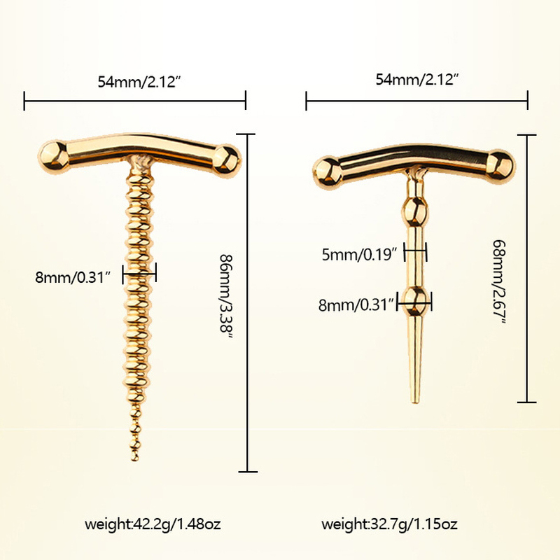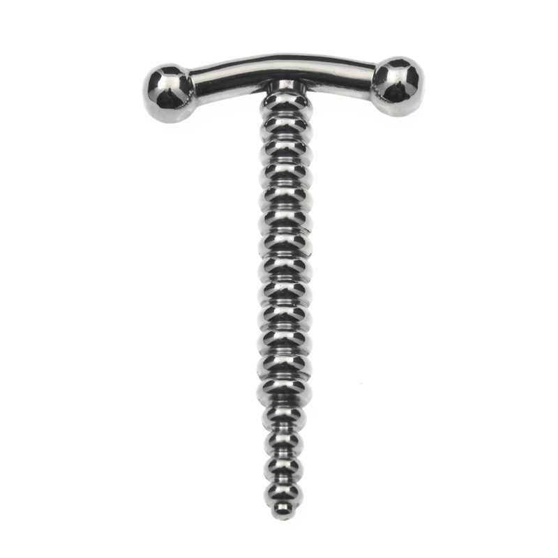 The Graduated Bead Penis Plug comes with 17 beads that begin small and increase in size. The diameter of the small beads is 5mm wide, the large beads are 8mm. A solid T-Bar handle at the top makes inserting and removing this penis plug a breeze.