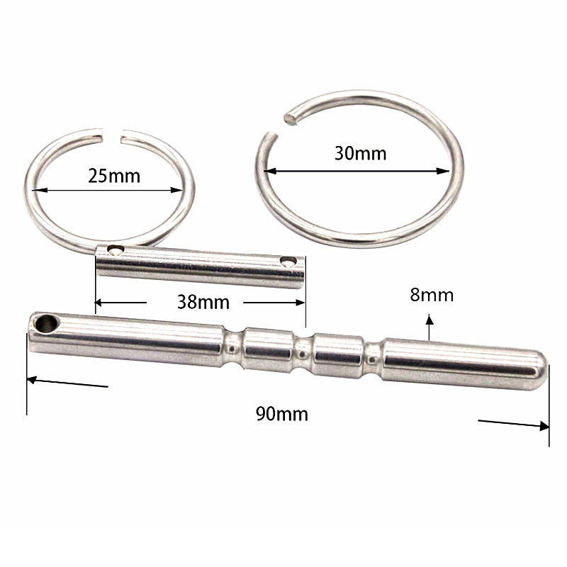 This grooved sound has a “cum-through” hole through the center which also allows bathroom use. The ring at the end of the device is a glans ring, designed to lodge behind the head of the penis and hold it in place. A second ring behind gives the shaft a bit of a squeeze too!Color: SilverMaterial: Stainless SteelPackage: BagInsert Length: 9 cm/3.5 inchesInsert Max Dia: 0.8 cm/0.3 inchesGlans Ring Dia: 3 cm/1.18 inches ? 2.5 cm/1.0 inches