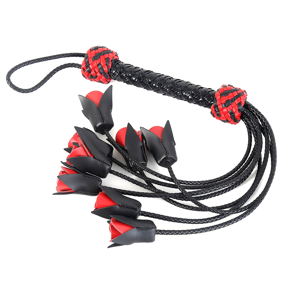 The whip consists of 8 roses, all hand-woven.The whip horse lash is of superior length and thickness for light tickles and sharp lashes.When you hold faux whip, you feel the power, and it’s up to your mood how to use this tool.Material: Faux LeatherColor: Black + RedLength: 64.5 cm/25.41…