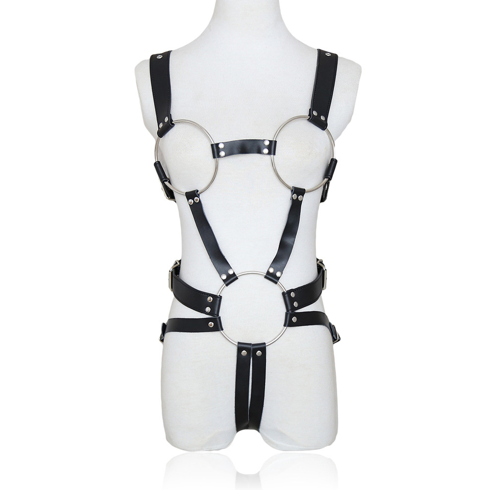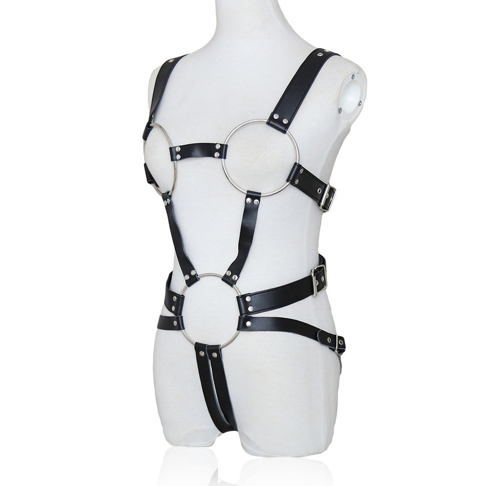 This is a beautiful design for this BDSM body harness, Made of leather and even if it is initaly designed for women, it can fit men just as well.