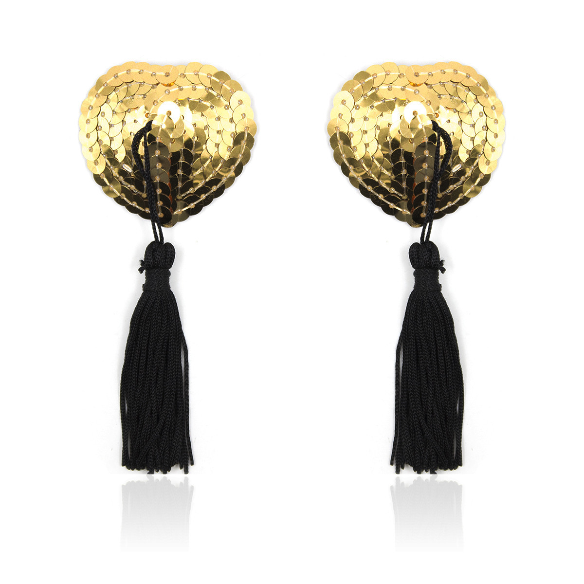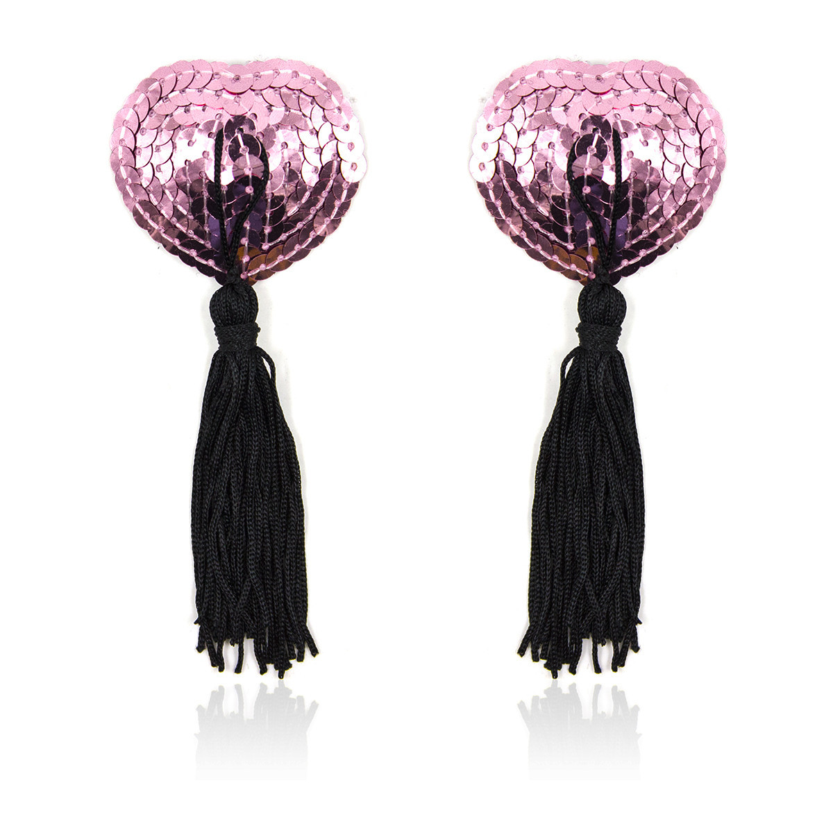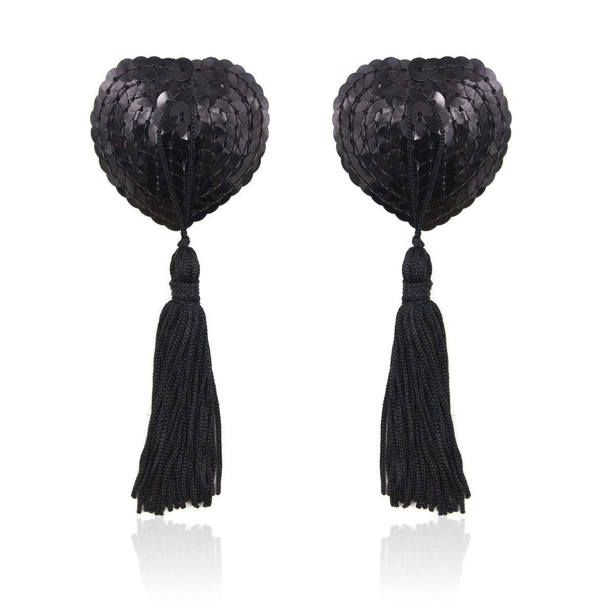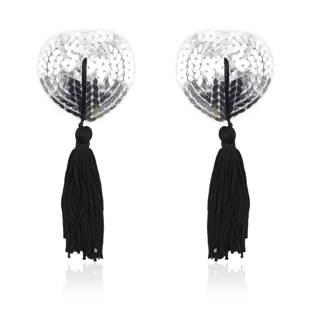 These heart shaped pasties are self adhesive sequin pasties with tassels, washable and reusable and are sure to add a little spice to your night.
