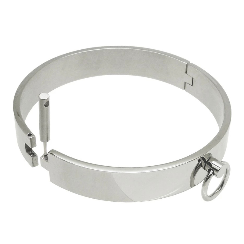 Keep your submissive in-line and in your control with this Thick Iron Locking Collar. The durable and heavy steel will remain firmly around your submissive??s neck, keeping them in place.