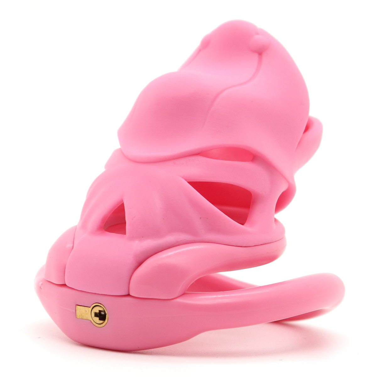 Meet your new obsession??a sleek, futuristic creation designed to tease, please, and totally mesmerize. This is more than just a cage??it??s an experience. With a bionic snake-head shape that coils with allure and promises control in the most seductive way, it wraps your desires in an irresistible sci-fi fantasy. The edgy, high-gloss look isn??t just for show??it turns heads and stirs cravings at a glance. You??ll feel the thrill the moment you see it, and once it??s on, it??s game over. And don??t worry, we??ve got you covered with multiple ring sizes to ensure the perfect fit??because the right grip makes all the difference.Material: Nylon ResinColor: Pink/BlackCage:S: 7.1 * 4.1 cm /2.80 * 1.62 inchM: 8.1 * 5.1 cm /3.19 * 2.01 inchRing:3.8 cm /1.50 inch4.3 cm /1.69 inch4.8 cm /1.89 inch5.2 cm /2.05 inchPackaging List:1 * Chastity Cage4 * Rings1 * Lock with 2 Keys