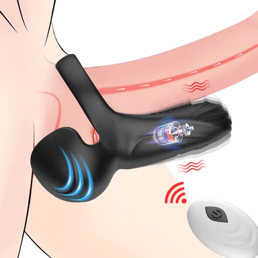 Give your balls a pleasant buzz with this Silicone Cock Ring with Taint Stim! Remote controlled, you can change the settings without having to readjust your genitals. Hand the remote to a partner so they can have even more fun making you writhe and squirm! There are 3 speeds and 7 patterns to choose from, so enjoy them all! The toy cups your balls, gently holding them in place as it vibrates. The little nubs on the inside of the ball cups deliver tantalizingly delicious sensations while the taint-stimulating pad sends powerful vibes to your perineum! Made of premium, phthalate-free silicone, it is also silky smooth and body-safe to use with water-based lubricants. Use it as a constriction ring to help enhance your hard ons, as well!Function: 10 Frequency VibrationColor: BlackSize: 10 * 7.2 * 5.8 cm/3.9 * 2.8 * 2.2 ?inchNet Weight: 86 g/0.19 lb/3.0 ozPower: Lithium battery/240 mAhMaterial: ABS + SiliconePackage: OPP BagFurther: Waterproof/Wireless