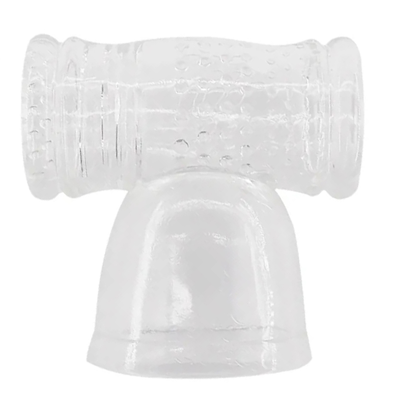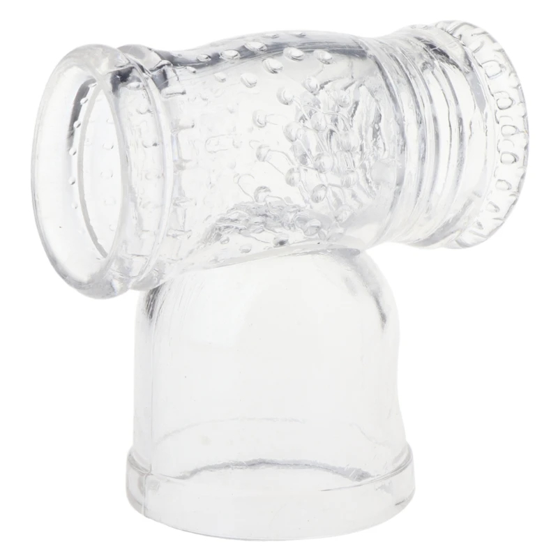 Ultimate Blowjob Simulator Wand Attachment is an all new male attachment for the wand massager! The attachment features a flexible tube that is filled with bumps, nodules and 5 layers of flexible ridges that excite and stimulate your entire penis! Either use the 3.25 inch opening to be enlightened by tight ridges and then bumps and nodules to enthrall you with or turn it around and receive a new and exciting sensation. It measures a full insertable length of 4.25 inches and a circumference of 6 inches. Made from a clear, see-through jelly rubber, you can see every vibration to pleasure and excite you!Once the penis is inserted (lube is your friend here), turn on the wand and your entire penis is drenched in vibrations that make the best blowjob you’ve ever had seem tame by comparison! Steadily increase the intensity of the vibrations until you come harder than ever before. When you’re ready for round 2, so is the Ultimate Blowjob as it never gets tired!Colour: ClearFull Length: 4.25 InchesInsertable Length: 3.6 InchesGirth: 3.25 InchesCircumference: 6 InchesMaterial / Texture / Feel: TPRWaterproof: YesFlexibility: Flexible