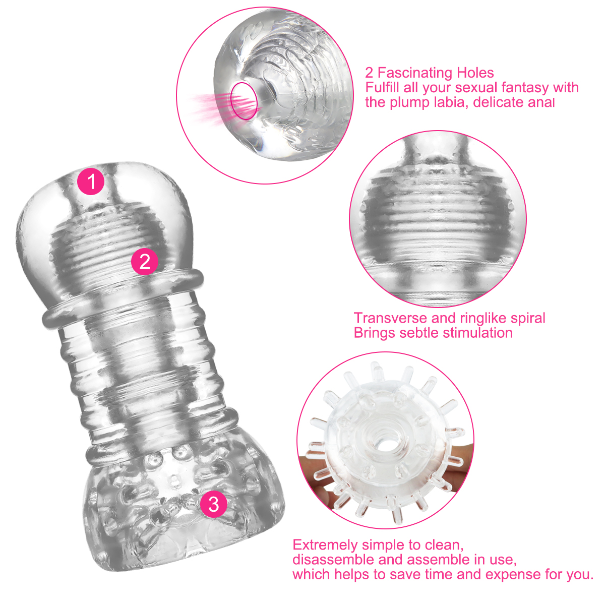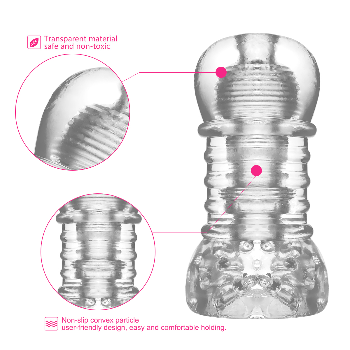 Blow your man’s mind with this Textured Sensation Stroker . A soft sleeve replete with pleasuring internal textures. Slide the ribbed and nodule-ridden stroker over your penis and feel the tapered interior squeezing you tighter and tighter.Plunge into the r ows of tickling tendrils that encircle the entrance to the toy, then graduate to the snug chambers of ribbing, watching yourself through the clear sleeve. Enjoy solo or as a couple’s toy, letting your lover pleasure you as you lie back and relax.Slather the sleeve with water-based lubricant to amp up gliding sensation.Key Features:Textured stroker to enhance masturbation, oral sex and hand jobsSee-through design so you or your partner can watch, heightening arousalNon-anatomical design is beginner friendly and perfect for use with a partnerInterior features ridges and nodules, and is tapered for extra thrillsOpen-ended to suit all sizesMaterial: TPELength:5.2 inchesCanal diameter: 1 inchesCircumference: 7.3 inchesInternal Length: 5 inchesPackaged Size:16×7.5×7 cmPackaged Weight:0.22kg