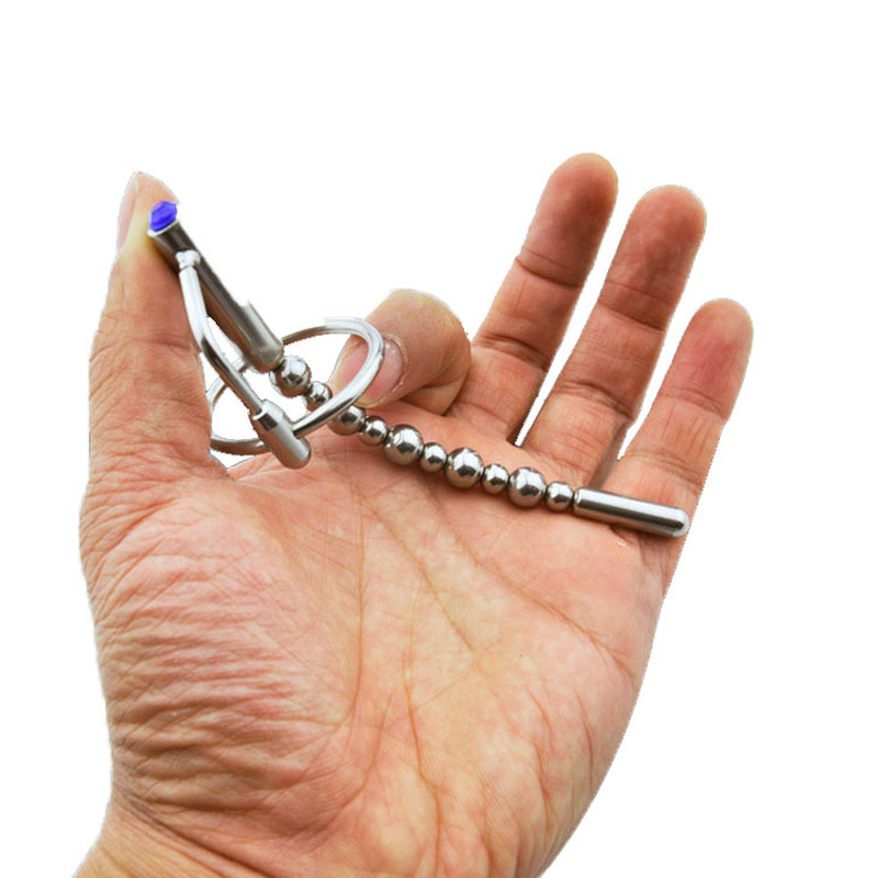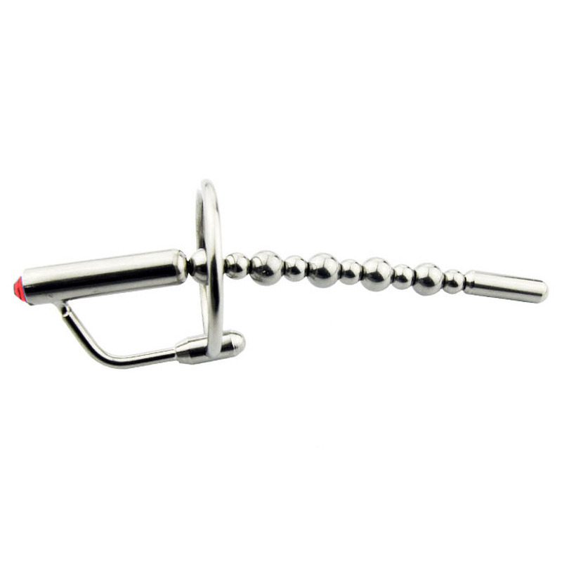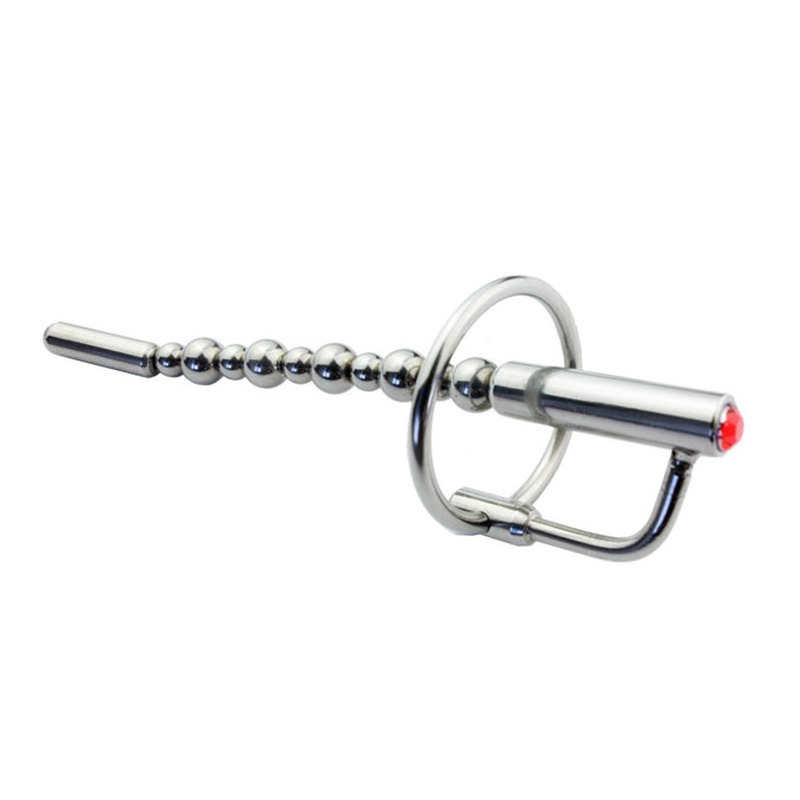 Pleasure and Pain combine exquisitely to make this Jeweled Bendable Beaded Penis Plug with Glans Ring the ultimate new toy for Mistress??s love slave. The effective and sensually tapered penis plug has nubs and ridges all along the length of it to tease and please. A 1.25″ ring goes around the penis behind the head, holding the whole device erotically in place.?