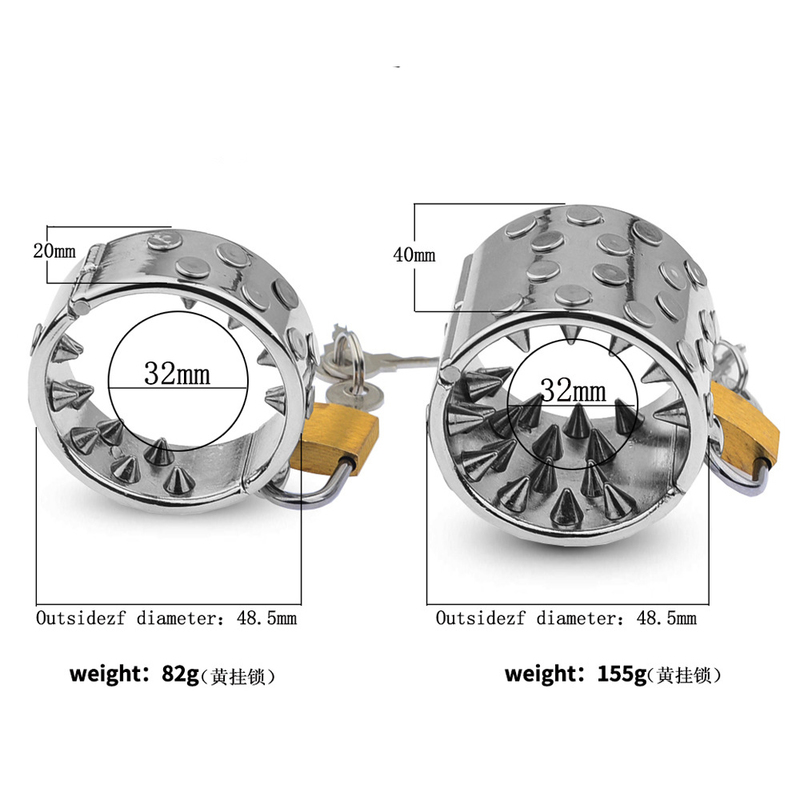 The Kali??s Teeth Chastity Device – Advanced is the ultimate in both cock torture and male chastity. This toothed cock ring is a steel shackle with spikes pointed inward for erotic sexual denial. The Kali??s Teeth Chastity Device is truly one of the fiercest CBT toys available on the market.?To wear the item, place the Kali??s Teeth Chastity Device around the shaft before full erection. As the wearer gets aroused the ring gets tighter and the spikes start to dig into the penis preventing a erection.This item is made using high quality carbon steel. Each one is powder coated with high gloss clear poly-urethane plastic baked into the steel. This makes is resistant to rust and easy to clean. It can be cleaned it with soap and water with a bit of bleach to sanitize it.?Color: SilverMaterial: Stainless SteelPackage: BagTeeth Length: 0.6 cm/0.24 inchesInside diameter: 4.3 cm/1.7″S Size(2 rows with 18 teeth)Height: 2 cm/0.79 inchesM Size(4 rows with 36 teeth)Height: 4 cm/1.6 inches