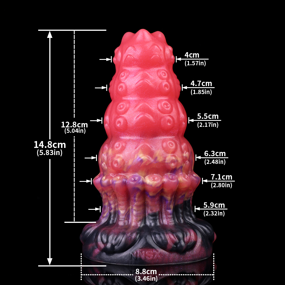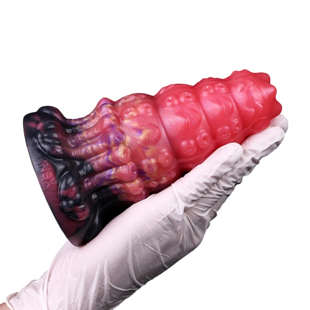 The larva-inspired anal plug is made up of smooth curves that evoke a moist, fleshy feel, allowing you to experience a different insertion sensation compared to other shapes. The gradually thickening shape creates a sense of expansion as well as a gradually deepening sense of pressure, allowing you to experience a sense of satisfaction as you slowly advance deeper. The surface is densely lined with small protrusions arranged like suction cups, providing a sticky stimulation that crawls along the inner walls during insertion and piston movements.Function: Anal Gape Sex ToysColor: Red + BlackSize: 14.8 * 7.1 cm/5.83 * 2.80 inchInsert Length:12.8 cm/5.04 inchNet Weight: 410 g/0.90 lb/14.46 ozPower: NoMaterial: SiliconePackage: OPP BagFurther: Soft/Non-toxic