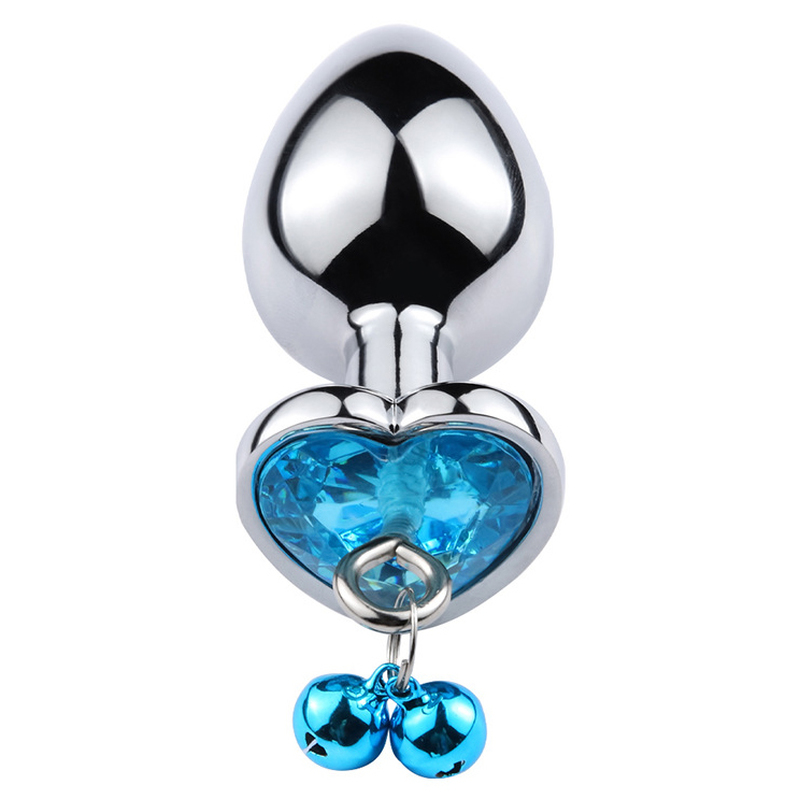 Leash Chain Heart Jeweled Anal Plug with Bell
