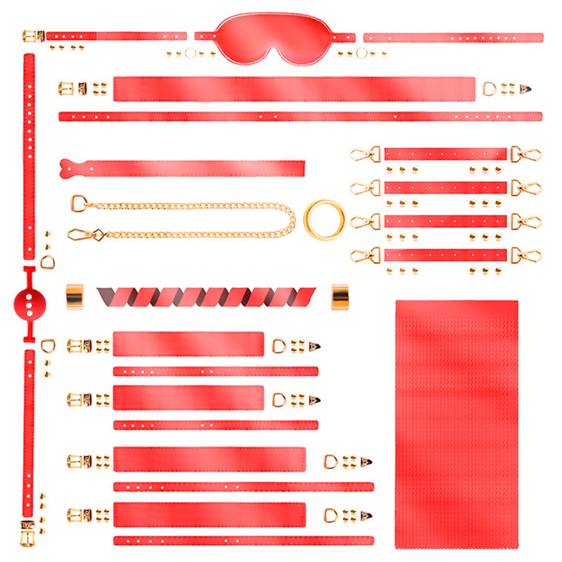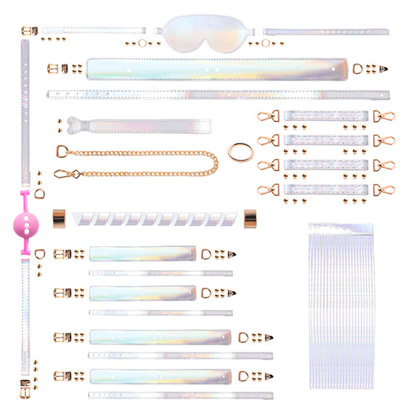 This premium set includes restraints, hand cuffs, collar, gag, and eye mask, all beautifully crafted for an unforgettable experience.