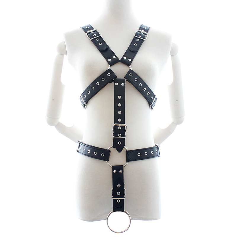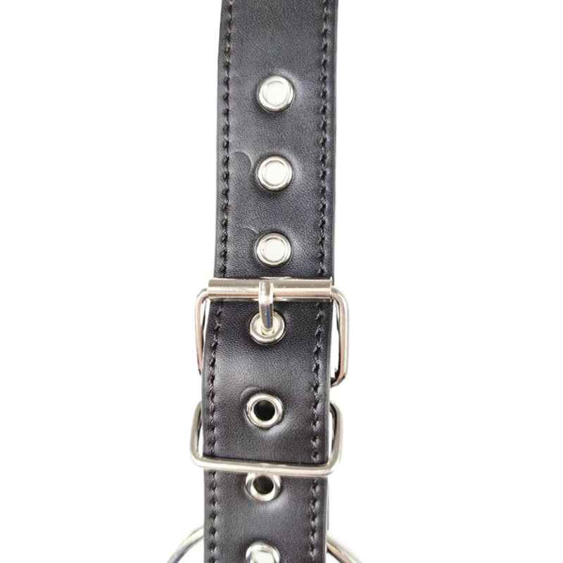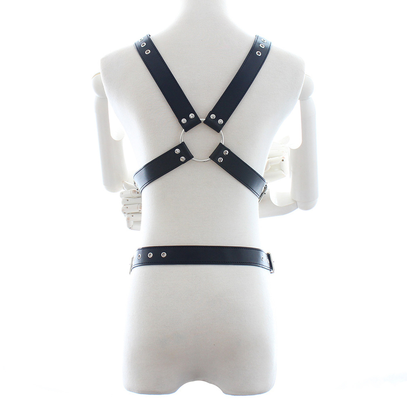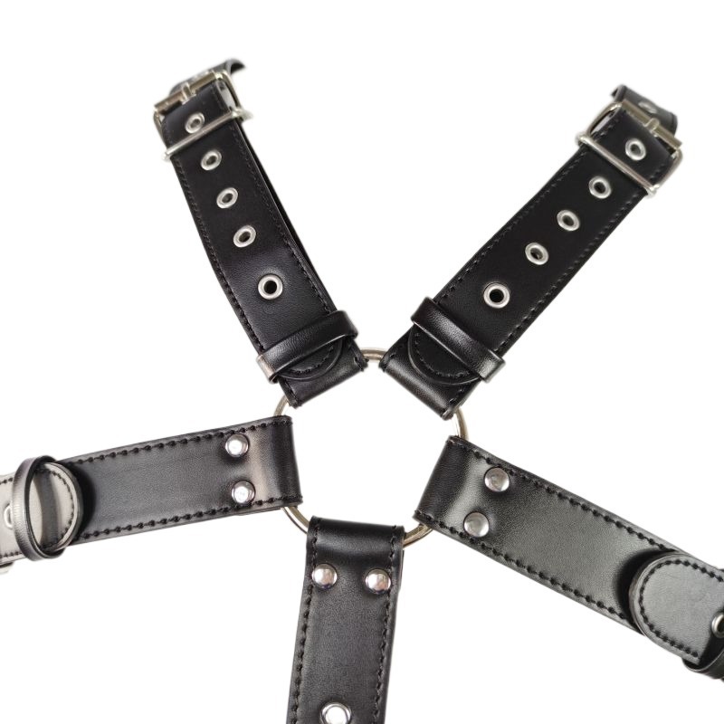The cock ring is 2 inches in diameter and connected to the harness via its own adjustable strap for the perfect positioning, ensuring comfortable wear. This is the best place to start your harnessing; slide his cock and balls through and gently buckle the rest into place.
