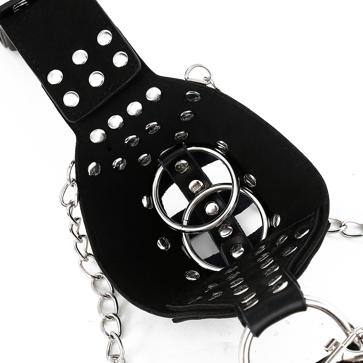 Follow the straps down and you’ll find the crotch pouch which is lined with cold metal studs that not only look great but apply a cool sensation to the skin too.