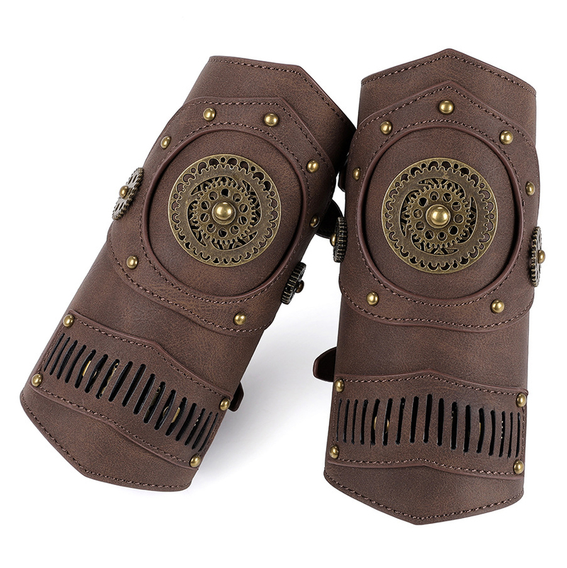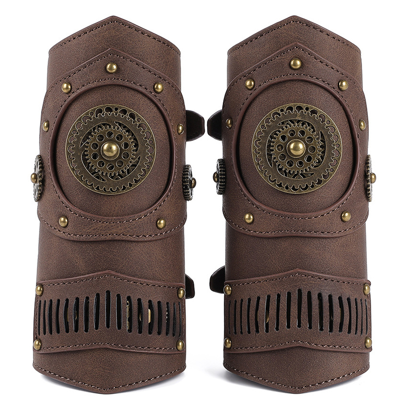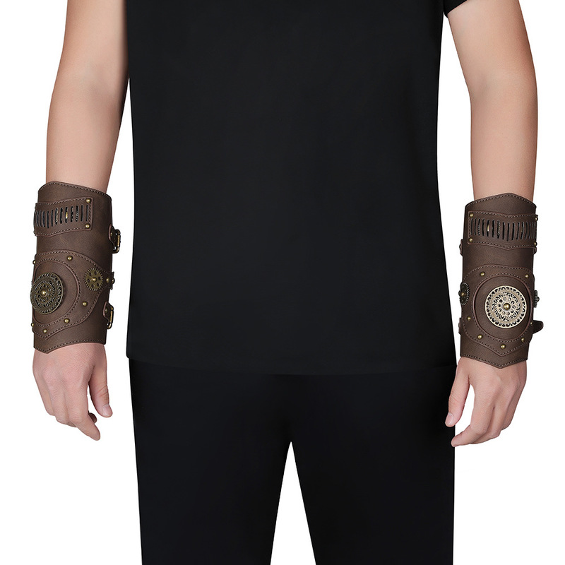 Steampunk Wrist Guard Retro Mechanical Gear Medieval Watch Leather Wrister Armor Archer Prop Costume Cosplay Anime Accessory Men