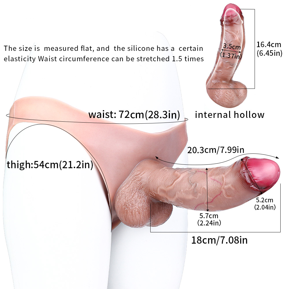 The strap on dildo has hollow sleeve design with the dildo, which is helpful to the male users, fit inside and enlarge your penis.Function: Strapon Wearable Hollow DildoColor: FleshDildo Size: 20.3 * 5.7 cm/7.99 * 2.24 inchHollow Size: 16.4 * 3.5 cm/6.45 * 1.37 inchWaist: 72.0 cm/28.3 inchThigh: 54.0 cm/21.2 inchNet Weight: 978 g/2.15 lb/34.49 ozPower: NoMaterial: ABS + SiliconePackage: Color BoxFurther: Washable/Hollow Dildo