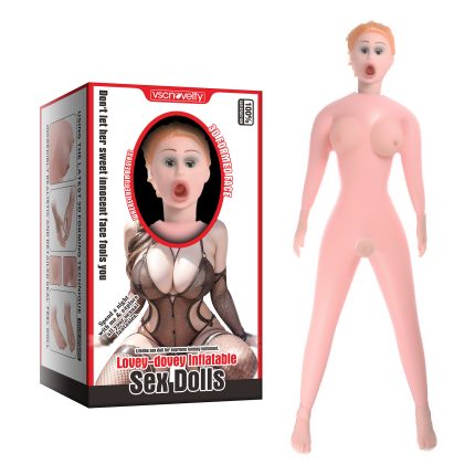 Get to know Lovey-dovey Inflatable Sex Dolls and you’ll discover a beautiful eyes with long, slender legs, lifelike eyelashes and tempting, bountiful breasts. Choose between her velvety vagina and exquisite ass, then revel in lifelike textures designed to please.The epitome of sex appeal, she has waves of lustrous hair that cascade over her shoulders, framing her ample, squeezable breasts.Her tiny waist invites you to wrap your arm around her, while her hands and feet are tipped with delicate, sculpted fingers and toes.With two tight entrances to explore, Her vagina and ass lead to a deliciously textured canal that’s ready and waiting to welcome you just as soon as she’s been inflated.After play, be sure to wash her and give her a light dusting with renewer powder to ensure she feels amazing every time.Treat your new lover to a lavish coat of water-based lubricant to enjoy maximum comfort and pleasure.. With wavy hair, big boobs, erect nipples and amazingly authentic entrances to explore, she’ll have you purring with satisfaction.Key Features:Lifelike inflatable sex doll with real-feel head, breasts, hands and feet for supreme fantasy fulfilment.Textured pussy and ass offer tight, lifelike sensations and accommodate most penis sizes.Perfect for stamina training on your own, or adding a third to play with a partner.Includes a foot pump so you can get going straight away.Enjoy real life-sized love dolls that will leave you wanting more.Adding more realism to your sex dolls with sexy lingerie.Material: Silicone+PVCOpening: Vagina & Butt.Product Size:158 cm Waist 56 cmPackaged Size:50x28x19 cmPackaged Weight:2.4kg