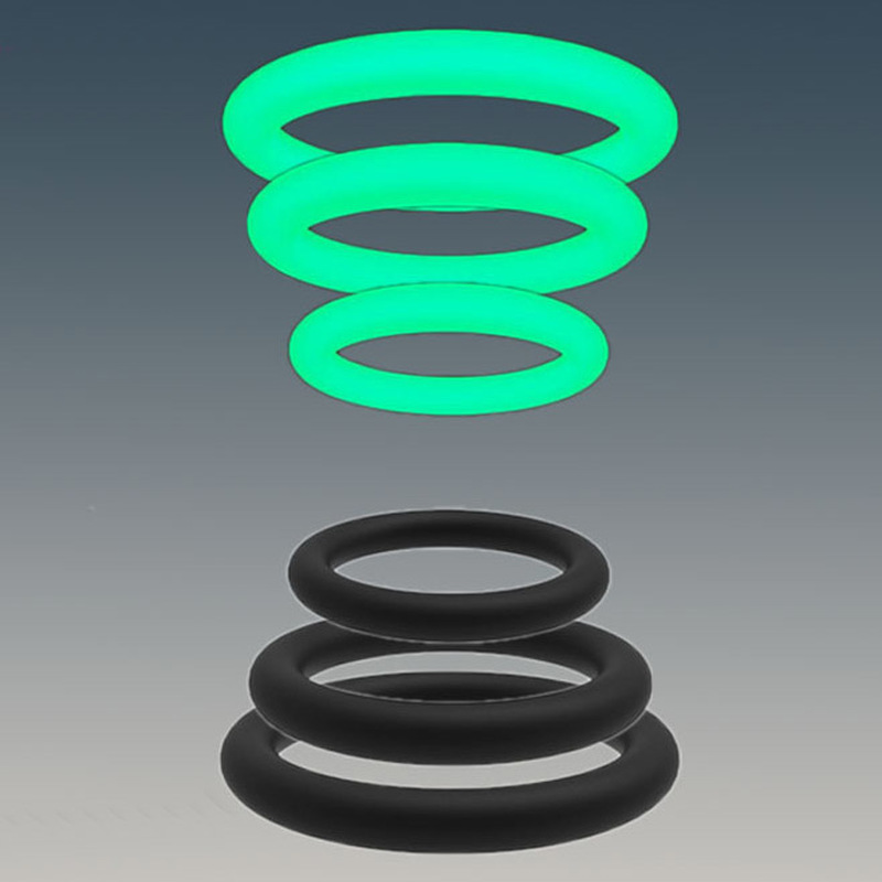 Function: Sex Delay RingColor: BlackSize: 2.0 – 2.3 – 3.7 cm/0.78 – 0.9 – 1.4 inchNet Weight: 9 g/0.01 lb/0.3 ozPower: NoMaterial: SiliconePackage: OPP BagFurther: Waterproof/luminousWhite Color is luminous