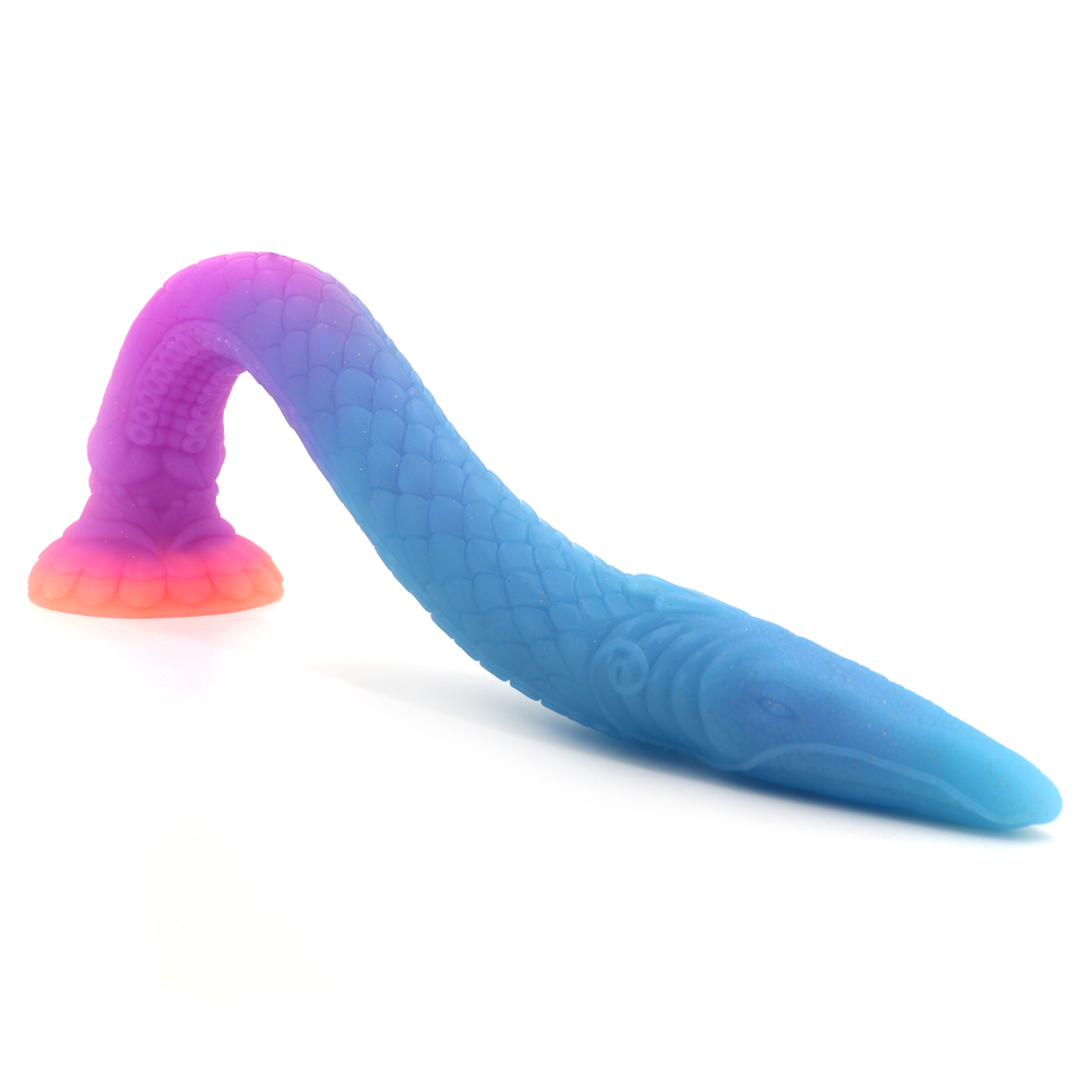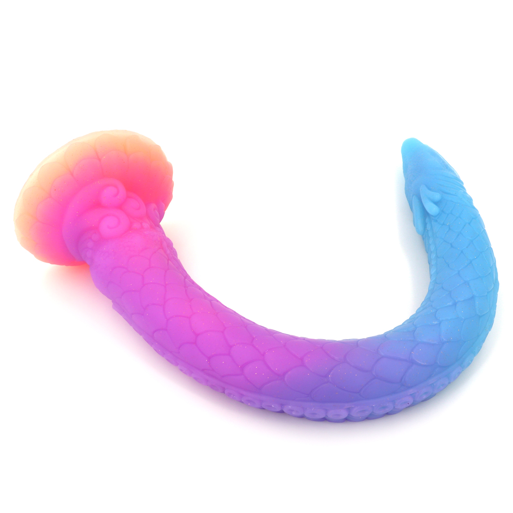 Fantasy Anal Hose: This mystical sea snake has an artfully designed base that is sunburst colored with yellow and glowing orange and a body with shades of purple and blue. The tip of this hose has the detailed head of a snake with eyes, gills and mouth. Along the hose are scales and sea-creature suckers. It’s bendy and flexible to snake down your hole!