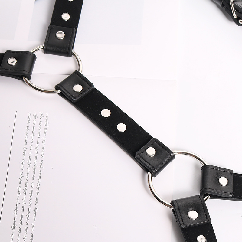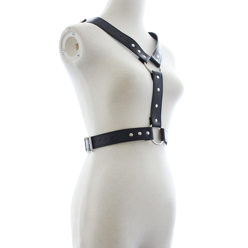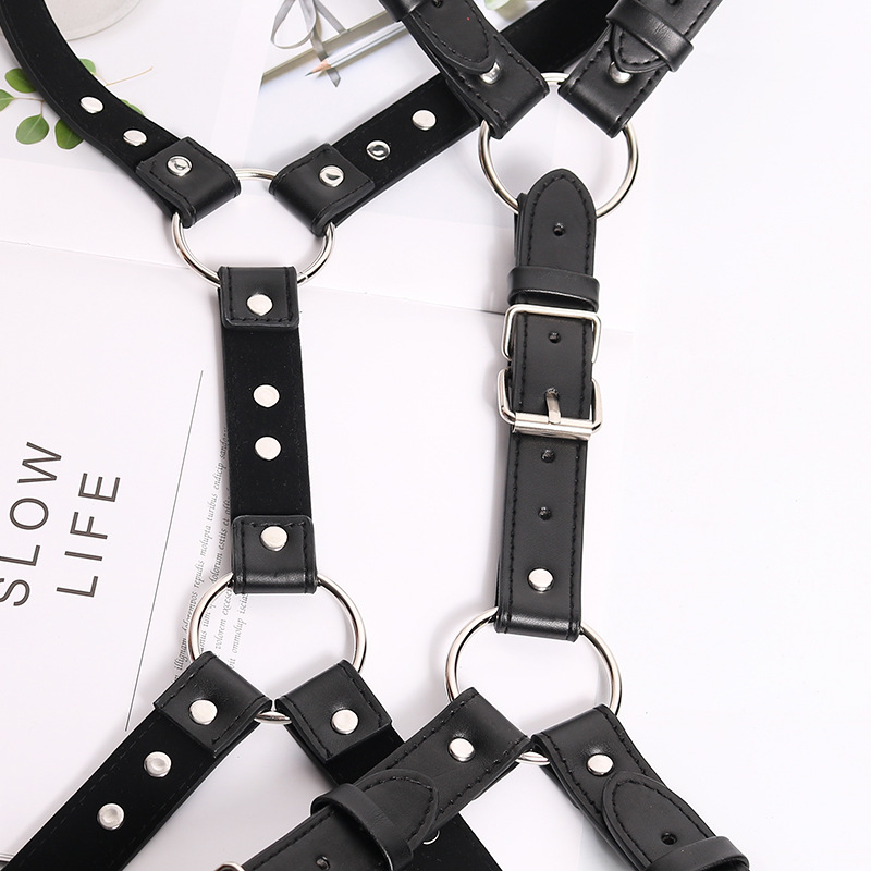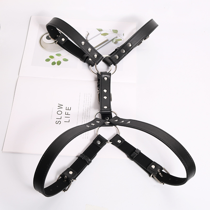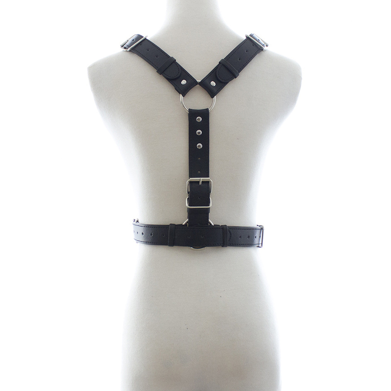 Genuine black latigo leather men’s harness with a center leather strap with snaps. Available in sizes X Small, Small, Medium, Large and Extra Large.