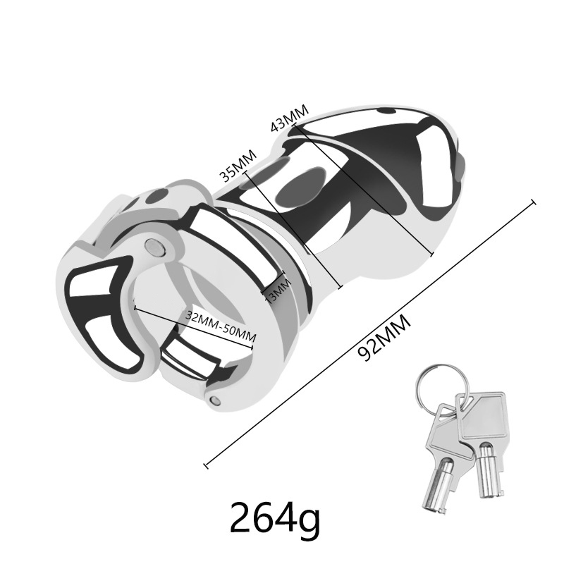 ADJUSTABLE SIZE: The bottom ring of the male chastity cage is adjustable from 32-50mm to fit most body types, with a total length of 92mm, an inner diameter of 35mm and a glans wrap inner diameter of 43mm.BREATHABLE: The adjustable chastity cage is surrounded by breathable holes to allow the penis to breathe freely even when worn. The front of the cage is equipped with a large urine outlet so that urine can drain normally from the top.ERGONOMIC DESIGN: The male chastity belt naturally conforms to the body curves and the slightly downward curved design makes the penis cage perfect for concealed carry, ergonomically designed for comfortable wearing.STAINLESS STEEL MATERIAL: The male chastity sex toy is made of high quality metal stainless steel material, pure handmade mirror polish, smooth and delicate without burrs, durable, not easy to fall off, easy to clean and store.Color: SilverSize: 9.2 * 4.3 cm/1.88 * 2.2 inchWeight: 264 g/0.77 lb/12.3 ozMaterial: Stainless SteelPackage: OPP Bag