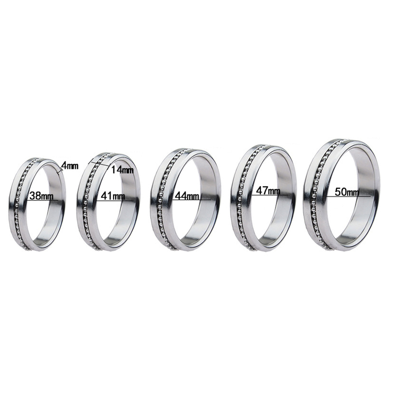 Material: MetalColor: Silver + GoldenRing Inner Dia:?S: 38 mm/1.5 inch (58 g/0.12 lb/2.0 oz ?)M: 41 mm/1.6 inch (60 g/0.13 lb/2.1 oz ?)L : 44 mm/1.7 inch (62 g/0.14 lb/2.2 oz ?)XL: 47 mm/1.8 inch (66 g/0.15 lb/2.3oz ?)XXL: 50 mm/1.9 inch (68 g/0.15 lb/2.4 oz ?)