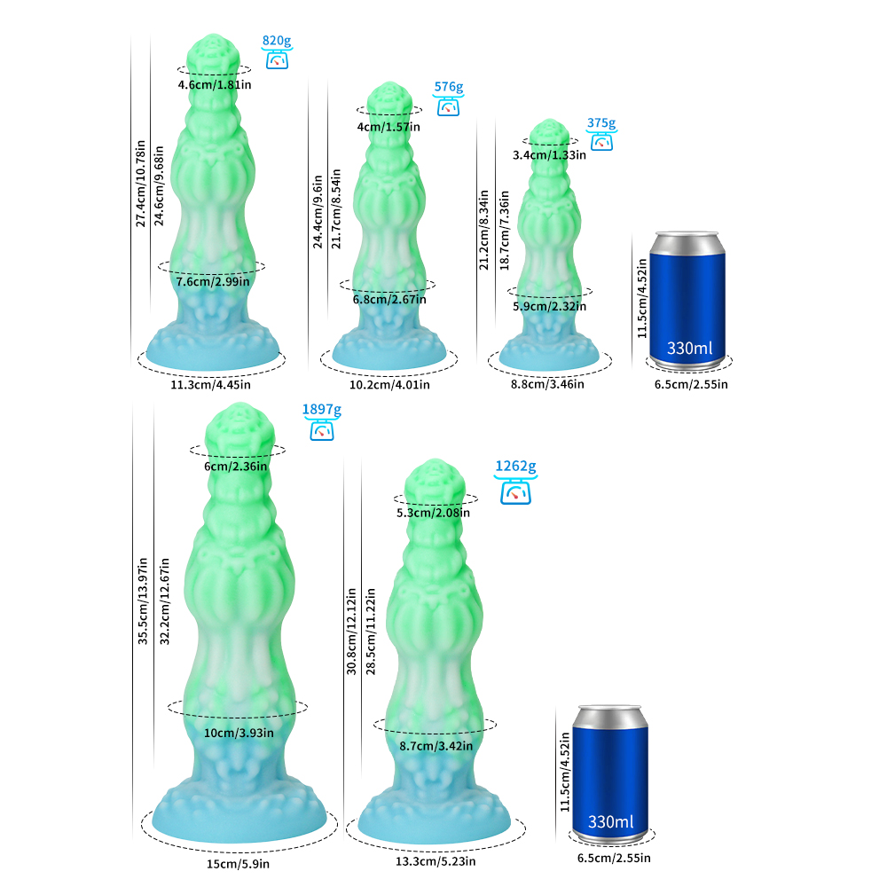 This monster knot anal dildo is made of top quality liquid silicone, glow in the dark, the softness of silicone is as delicate as realistic skin, and you can feel the heat and tenderness when you touch it gently.Function: Glow in the dark Large Silicone Horse DildoColor: GreenSize:S: 21.2 * 5.9 cm /8.35 * 2.32 inch (375 g/0.83 lb/13.23 oz)M: 24.4 * 6.8 cm /9.61 * 2.68 inch (576 g/1.27 lb/20.32 oz)L: 27.4 * 7.6 cm /10.80 * 2.99 inch (820 g/1.80 lb/28.92 oz)XL: 30.8 * 8.7 cm /12.14 * 3.43 inch (1263 g/2.78 lb/44.55 oz)XXL: 35.5 * 10.0 cm /13.99 * 3.94 inch (1897 g/4.17 lb/66.91 oz)Insert Size:S: 18.7 cm /7.37 inchM: 21.7 cm /8.55 inchL: 24.6 cm /9.69 inchXL: 28.5 cm /11.23 inchXXL: 32.2 cm /12.69 inchPower: NoMaterial: SiliconePackage: OPP BagFurther: Anal Sex Toy/Non-toxic/Luminous/Animal Dong/Monster Fantasy Dildo