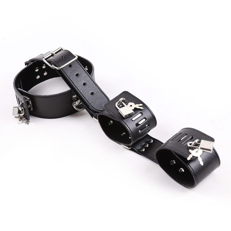 Be utterly powerless in this black leather neck to wrist restraint. With luxury leather and metal buckles to match, this product belongs in any bondage enthusiast’s collection.