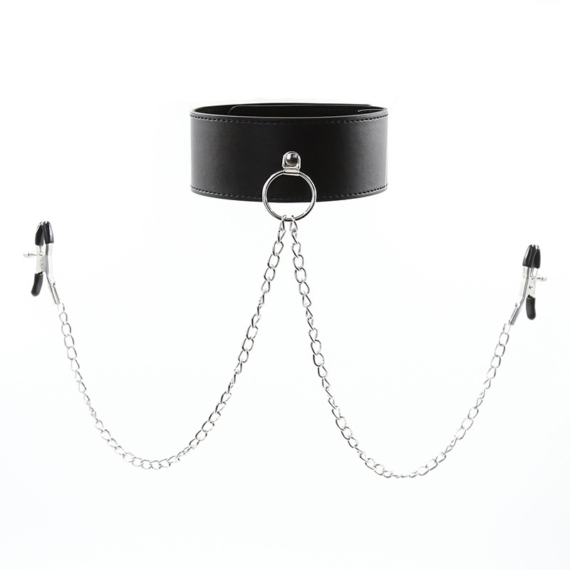 Material: PVC + MetalColor: BlackCollar Size: 45 * 4.5 cm/17.71″ * 1.8″Chain Length: 34 cm/13.4 inch