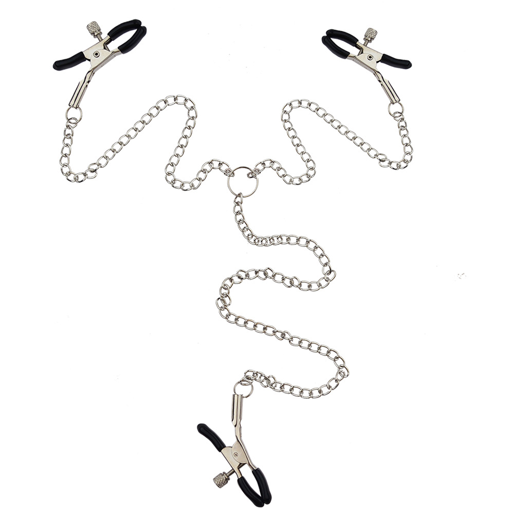 Become a happy clamper by exploring the nip and clit-clipping delights of Bondage Boutique’s nipple and clit clamp set. A strong chain links 2 crocodile clamps to a central O-ring and clit clamp, which can be individually tightened for a satisfying pinch.