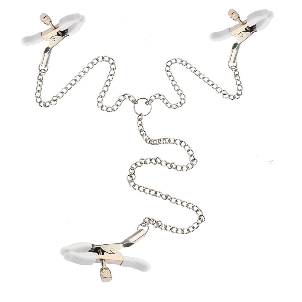 Become a happy clamper by exploring the nip and clit-clipping delights of Bondage Boutique’s nipple and clit clamp set. A strong chain links 2 crocodile clamps to a central O-ring and clit clamp, which can be individually tightened for a satisfying pinch. Suitable for all levels of experience, simply place each smooth PVC-tipped clamp on either side of your nipple and tighten until you achieve a level of pressure that suits you. Add the clit clamp into the mix to send your sensory play into new realms of erotic excitement. Mini O-rings connect each chain, opening the opportunity for additional weight and restraint accessories. Gently tug or add weights to the O-ring to increase tension and weight, to advance your nipple and clit play.