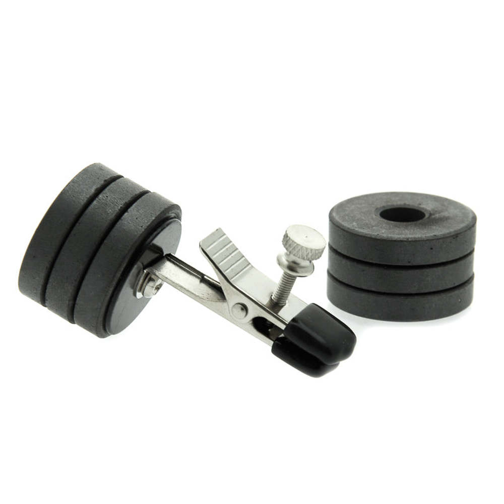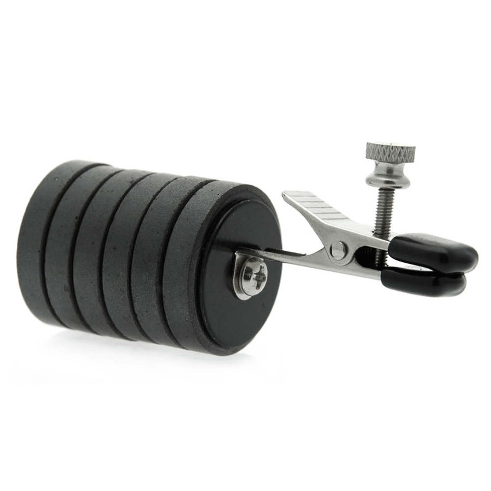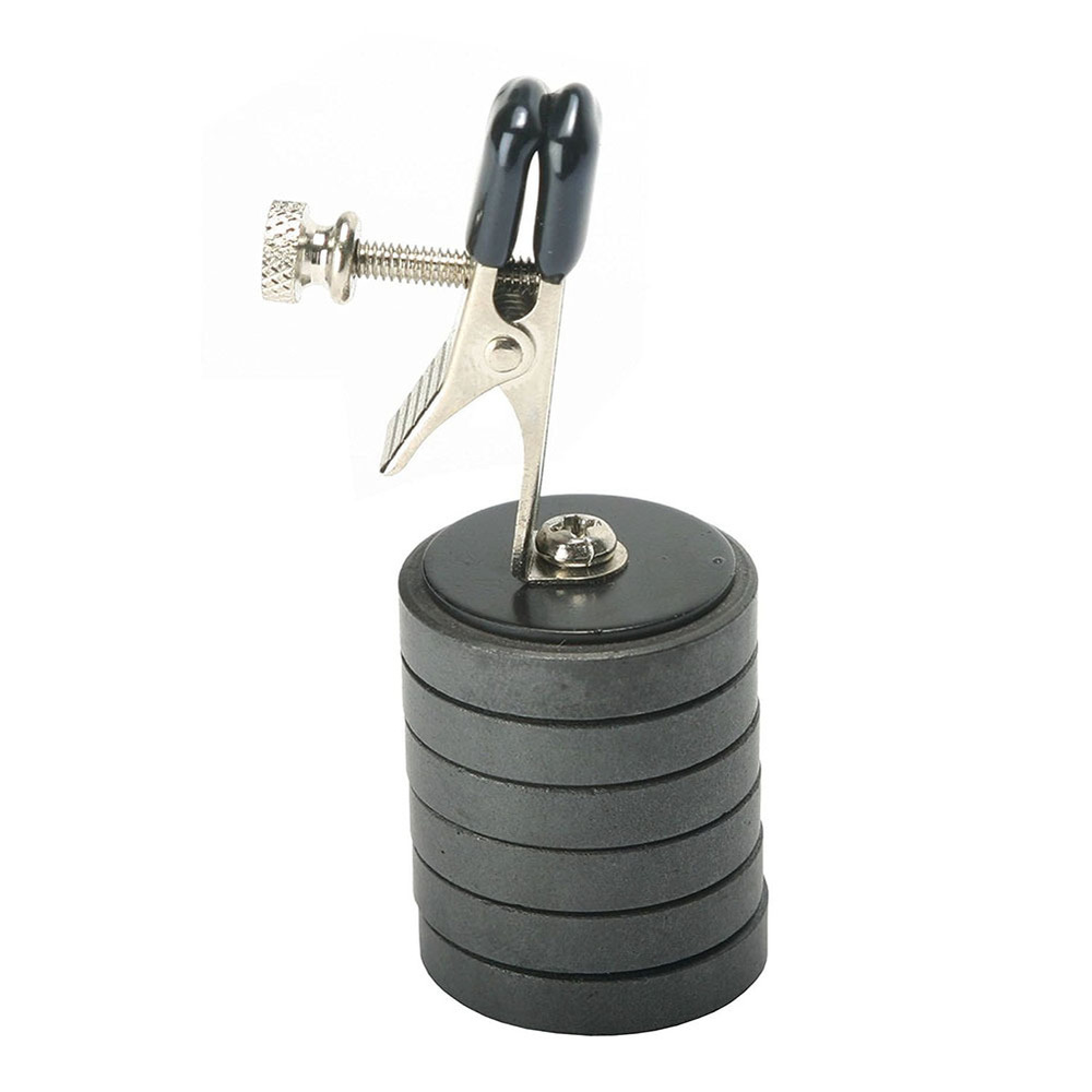 When placed just so, this single alligator style clamp is designed to add graduated pressure to the sensual areas of your plaything. You decide if they deserve light pressure or an intense pinch. Onus comes to you with a rubber tipped clamp with a twist-up adjuster, and 6 removable 1 oz. magnet…