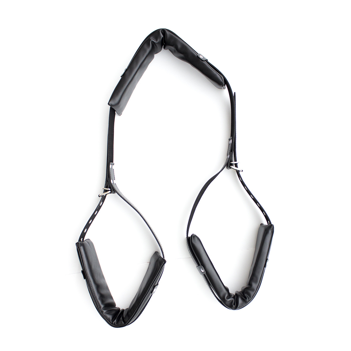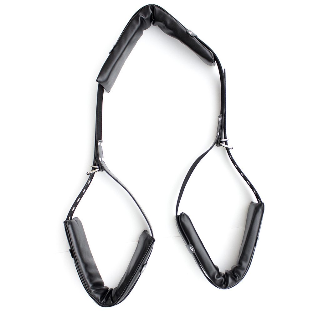 Now you can get in deep and penetrate your partner in comfort with the Open Wide Padded Thigh Sling. With a padded neck brace, it will pull their knees back and expose their innermost areas to your attention. Uses a buckle style system for easy adjustment, and additional D-rings so you can attach additional bondage accessories if the mood strikes you. Now you can enjoy deeper, more satisfying lovemaking with the Open Wide Padded Thigh Sling!