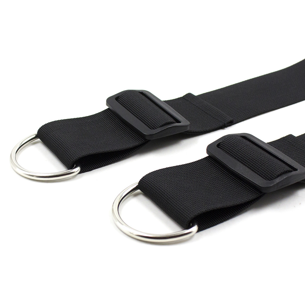 Strong metal D-rings secure cuffs to straps for safety and assurance