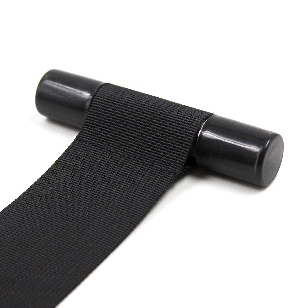 9.5 inch strong Nylon strap connected to a 6.4 inch barbell for a secure hanging position