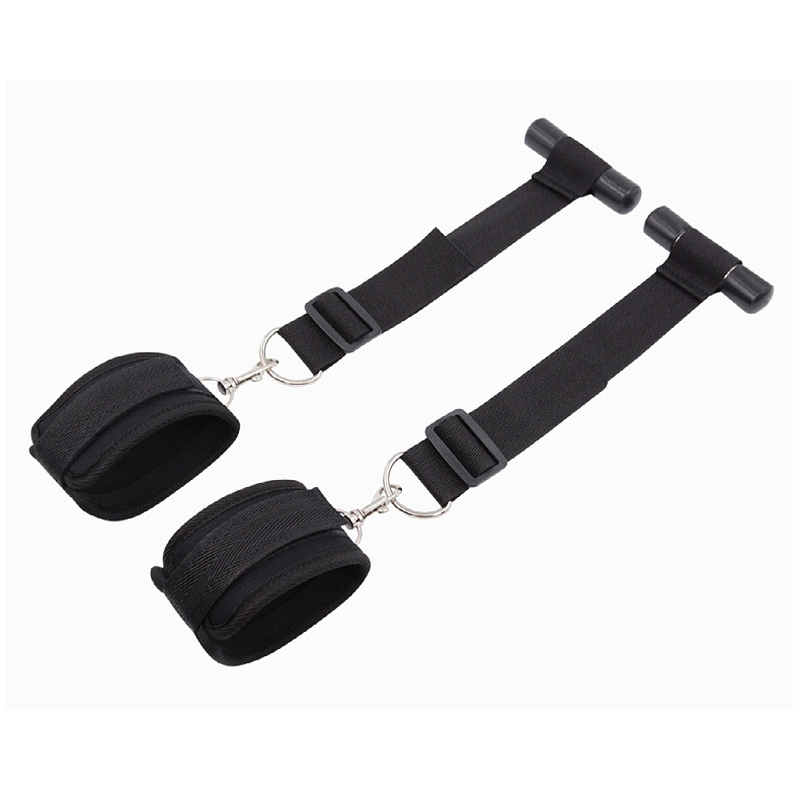 Cylinders are placed above the door before closing the door. The cuffs are soft and do not leave marks on the skin, and close easily with Velcro. Then the game can begin!