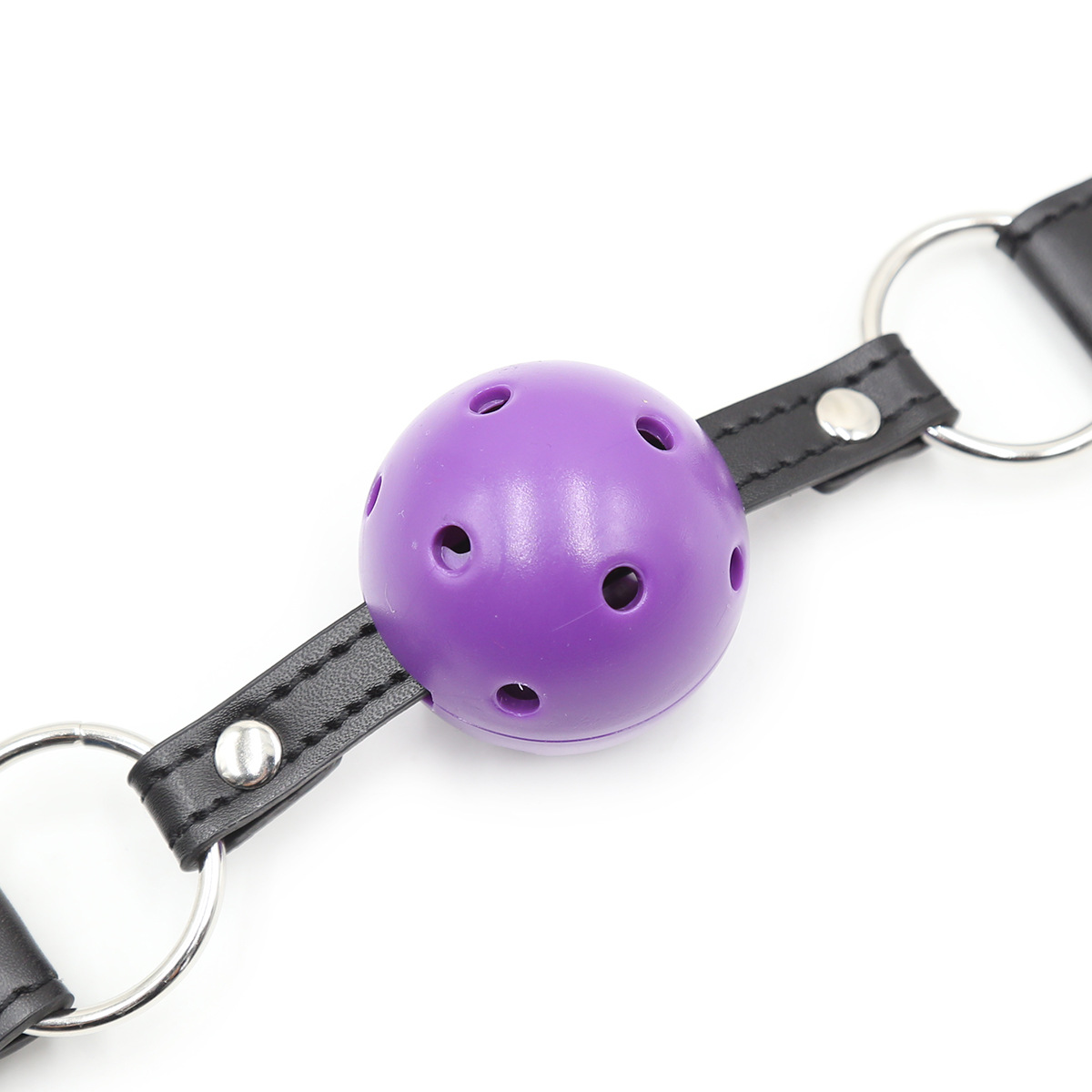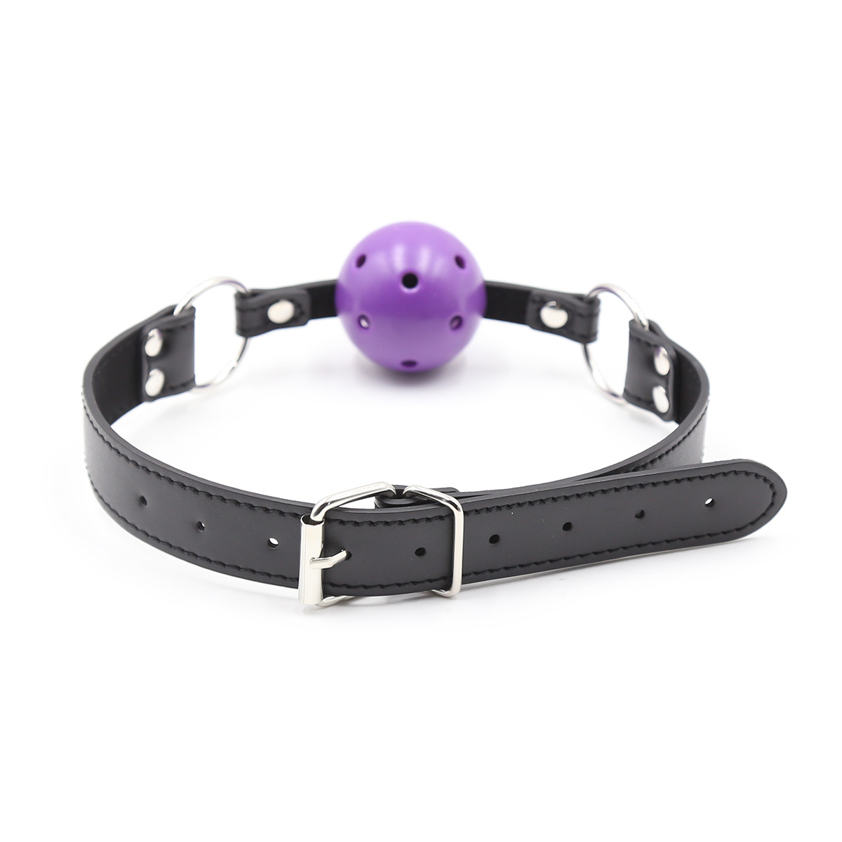 Picture having your partner bound to the bed. You insert a ball gag into their mouth making it harder for them to speak — all they can offer you is moans and pants. The Breathable Ball Gag with Leather Strap offers a premium ball gag, but uses holes to allow for easier breathing during use. For some, having those holes means a prolonged and enjoyable bondage experience.The gag is easily tied around the head using a leather buckle system.