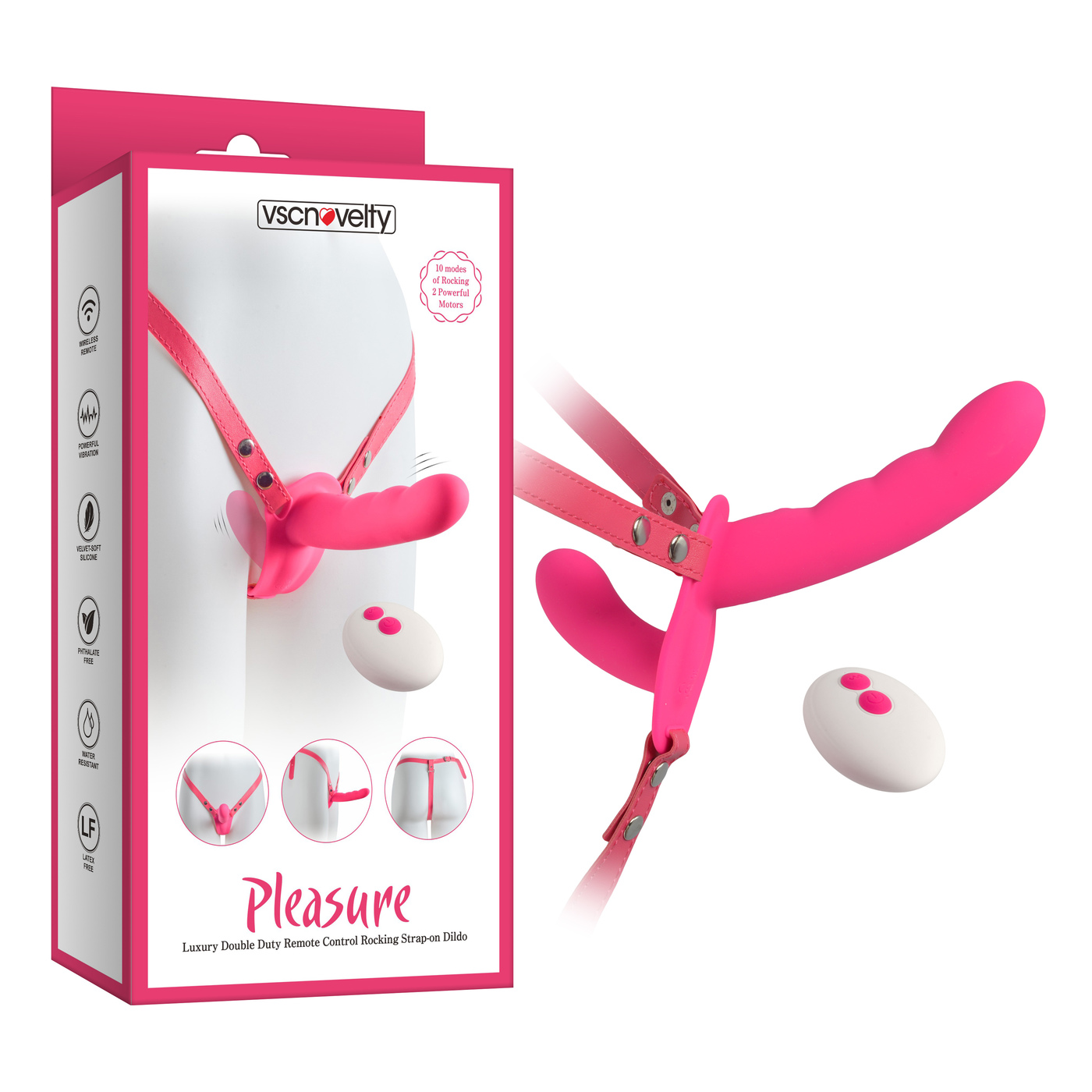 ??Rechargeable, wireless remote control rocking strap-on, for shared pleasure from penetration play.??10 modes of vibrations and rocking speeds for a bespoke experience.??Curved silicone shafts with semi-realistic heads target pleasure points for both wearer and receiver.??Harness features a thick, smooth and adjustable waistband for a secure, comfortable fit.??It boasts 2 powerful motors, sending out waves of all-encompassing pleasure to both you and your partner.Material :Silicone+ABS.Diameter: 1.37 inch (3.5 cm).Insertable Length for Giver 3.15 inch (8 cm).Insertable Length for Receiver: 6.3 inch (16 cm).Packaged Weight:0.9kg