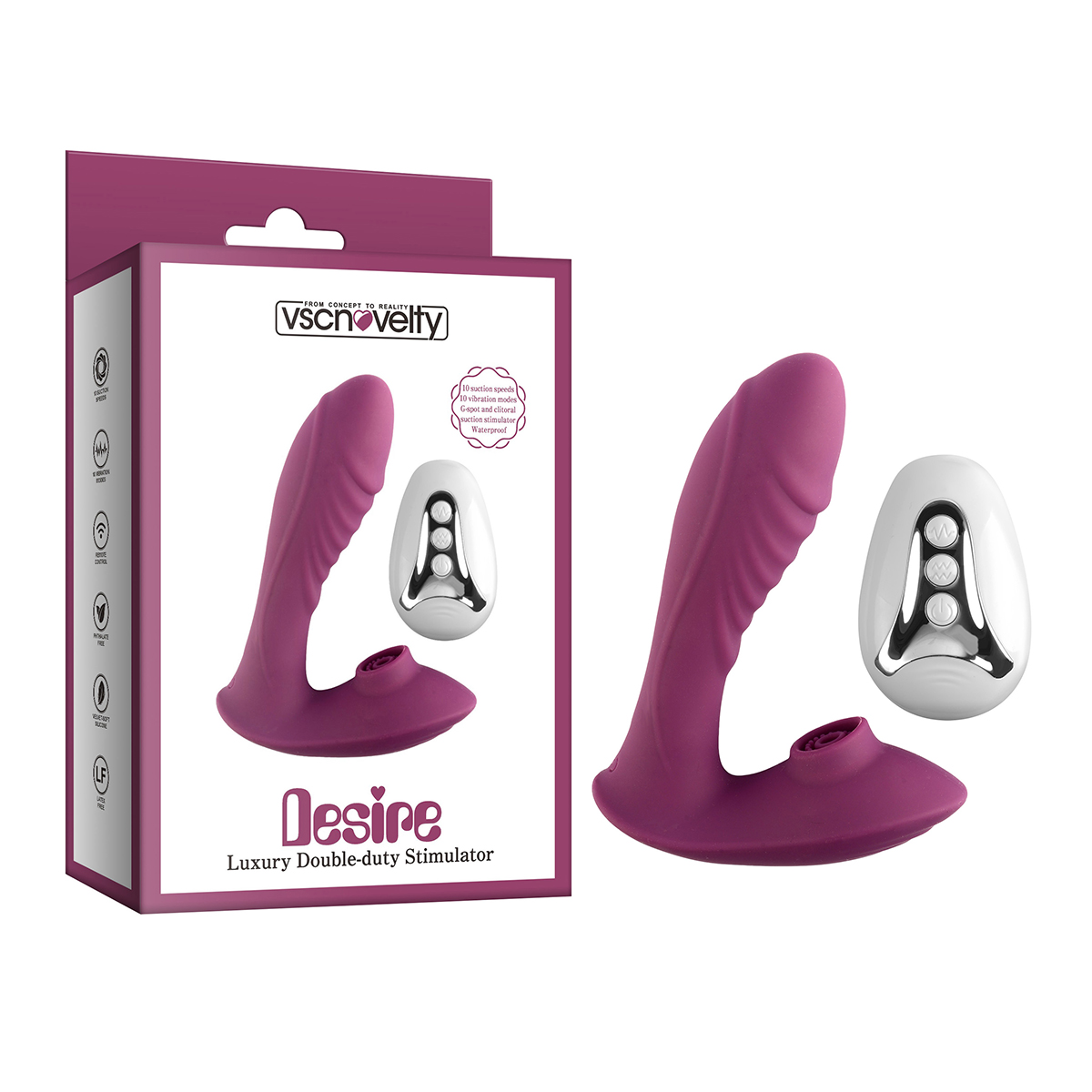 Our double-duty vibrator. Harnessing the epic power of rumbly vibrations and Pleasure Air Technology, this pretty vibe expertly stimulates your G-spot and your clitoris simultaneously.Using Pleasure Air Technology, this clitoral stimulator lavishes your sensitive nerve-endings with a featherlight, contactless caress.Simply run a touch of water-based lubricant around the rim and over the shaft, insert the shaft and enjoy incredible dual stimulation.While the clitoral rim boasts 10 suction speeds, the smooth silicone shaft has a grand total of 10 vibration modesKey Features:10 suction speeds and 10 vibration modes to keep you on your toesRemote control operated for shared adventuresG-spot and clitoral suction stimulator for blended orgasmsPleasure Air Technology provides incredible stimulation to your most sensitive areasRechargeable via USB with long-lasting battery life makes it a travel-friendly choiceEssential Info:Function10 Modes Vibration&Suction/WirelessMaterial:Silicone+ABSPhthalate-FreeLength: 5.25 inchesCircumference: 4.15 inchesPackaged Size:15.5x11x4.5 cmPackaged Weight:0.22kg