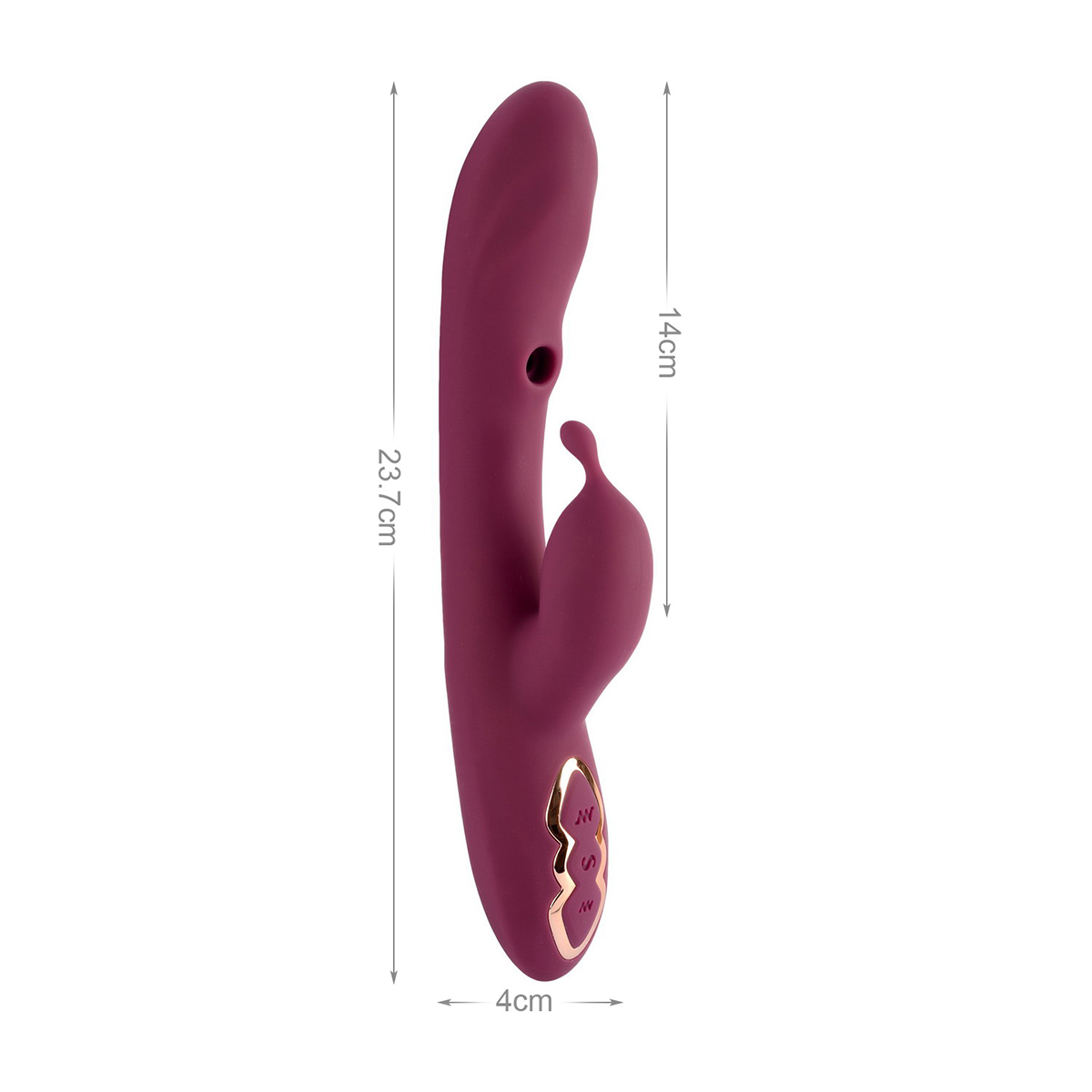 The contours of your vibrator have been lovingly crafted to target your G-spot for unbridled internal exhilaration, while the generous ear simultaneously tease your clitoris. It’s a combination designed to bring you all the way to sheet-clenching blended orgasms, and the whisper-quiet yet powerful vibrations ensure discretion when required.Control each motor independently using the simple 3-button interface and enjoy a totally tailored pleasure session with a w-hopping 7 modes.Keep your Pleasure Luxury Vibrator to yourself for heavenly solo arousal, or hand it to your partner to add a thrilling new dimension to foreplay.Key Features:Explore 7 levels of intensity from both the vibrating&sucking G-spot and clitoral stimulatorTriple independent function controls for customized playLuxurious silicone rabbit vibrator for dual internal and external stimulationRounded shaft for easy insertion, and flexible clitoral stimulator for pinpoint massagesRechargeable via USB with long-lasting battery life makes it a travel-friendly choiceEssential Info:Function:7 Modes VibrationMaterial: Silicone+ABSPhthalate-FreeLength: 9.35 inchesInsertable Length: 5.5 inchesCircumference: 4.95 inchesPackaged Size:24×8.2×4.2 cmPackaged Weight:0.26kg
