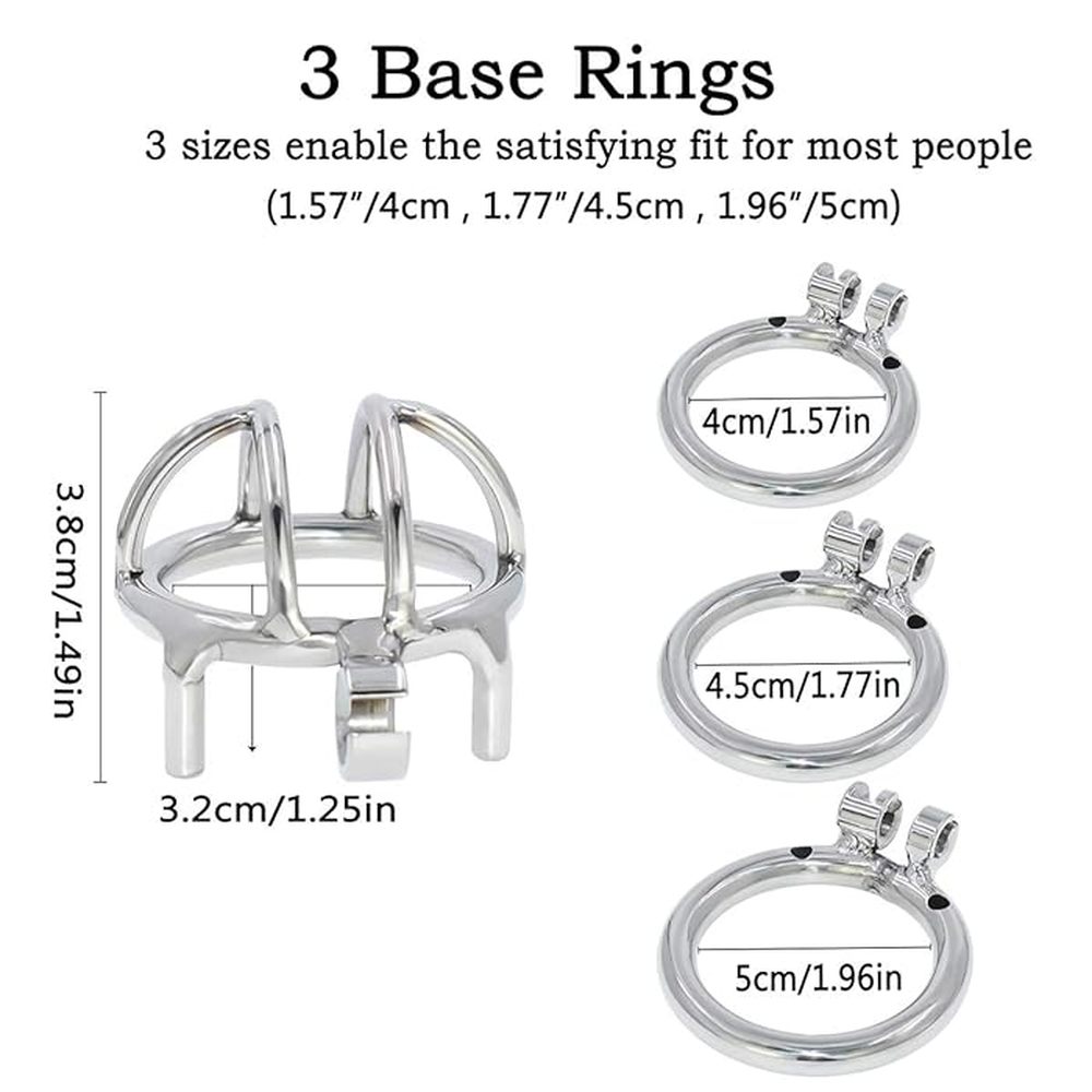 Ring Size:S: 4 CM/1.6 INCHM: 4.5 CM/1.8 INCHL: 5 CM/2.0 INCHLength:The cage length is 2.7CM/1.1″ with an inside diameter of 3.5CM/1.4″.Material: 304 stainless steelColor: SliverPackage: OPP Bag
