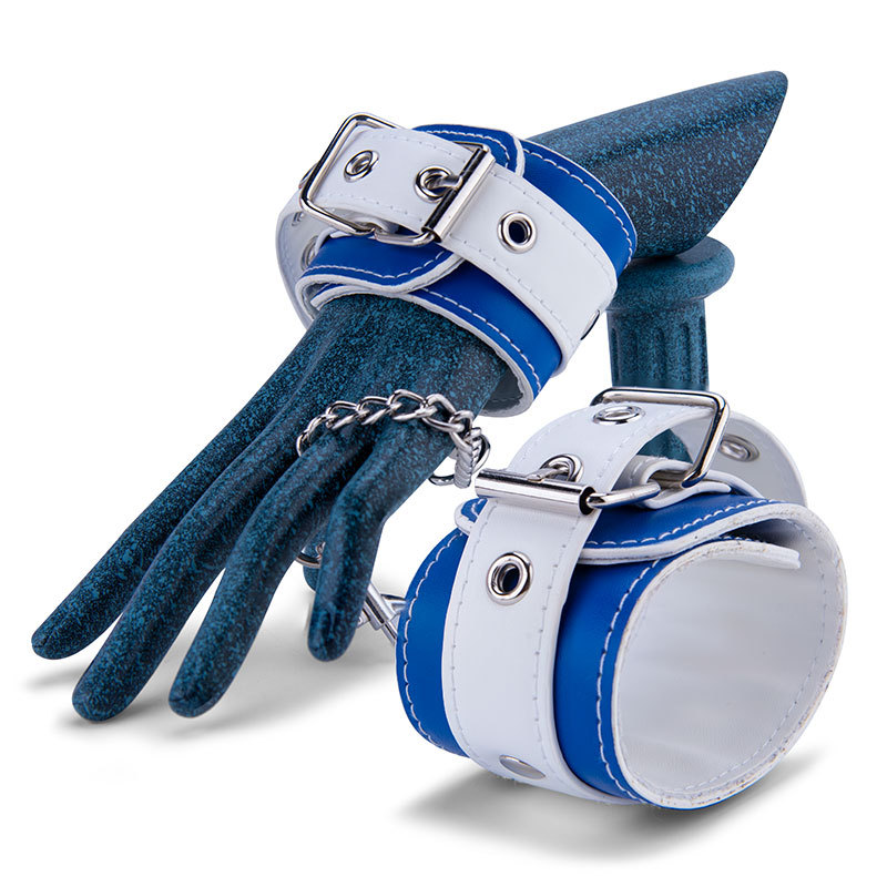 Material: Faux LeatherColor: Blue+WhiteWrist Size: 26.2 * 5 cm/10.3 * 1.96 inchAnkle Size: 30.6 * 5 cm/12.0 * 1.96 inchPackage: OPP Bag