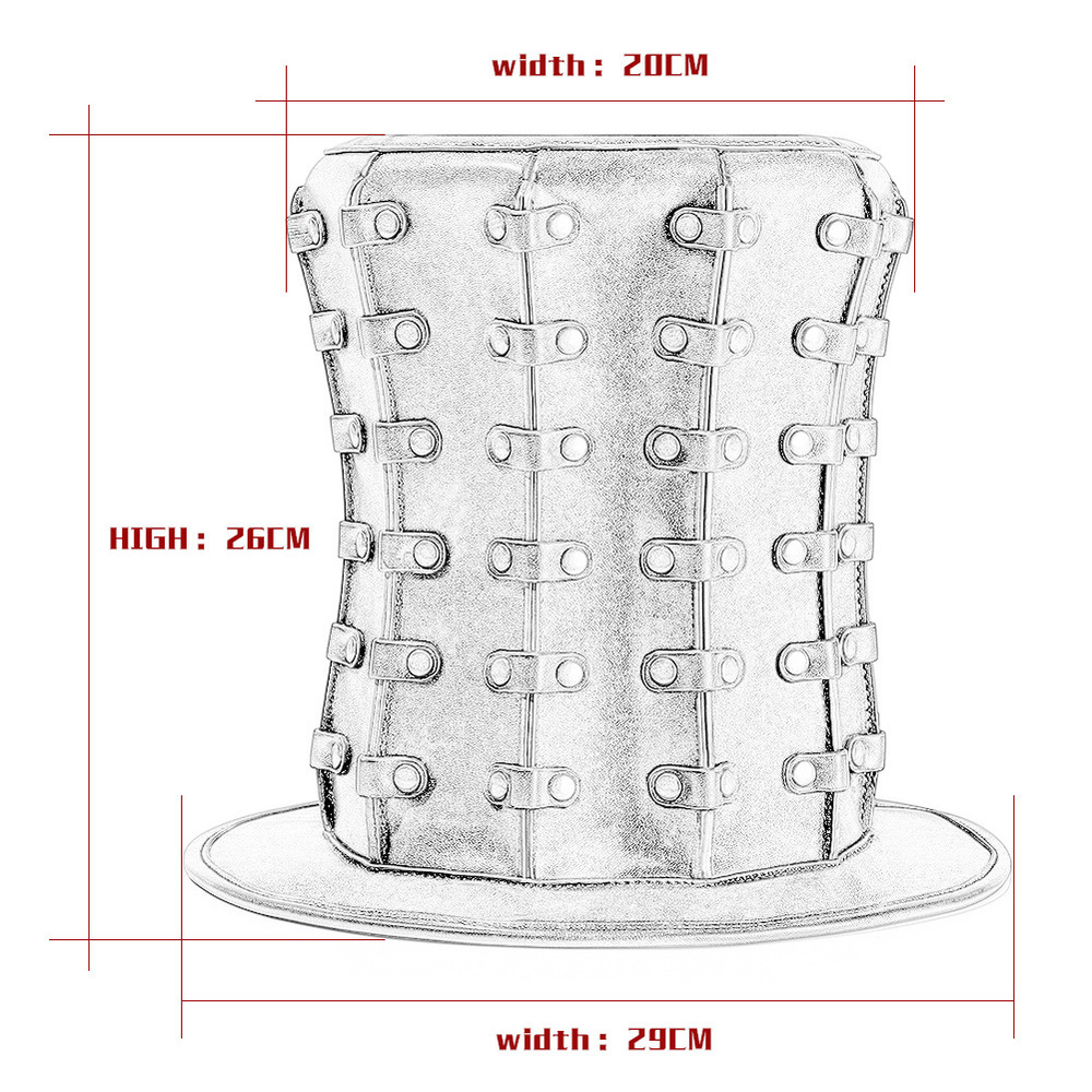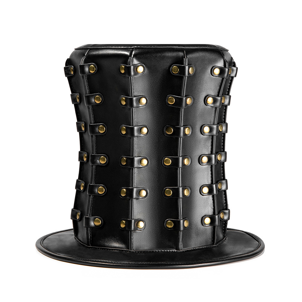 vintage Cosplay Carnival Party Hats ladies black top hat with rivets Unisex hight hat steampunk male top hat gothic costume accessories anime propsGender: UnisexPattern Type: SolidDepartment Name: AdultBlouse: FlatItem Type: HatsSpecial Use: CostumesWeight:0.45KGSize:One SizeOutside Length:29CM/11.4″Inside Length:20CM/7.87″Depth:26CM/10.23″