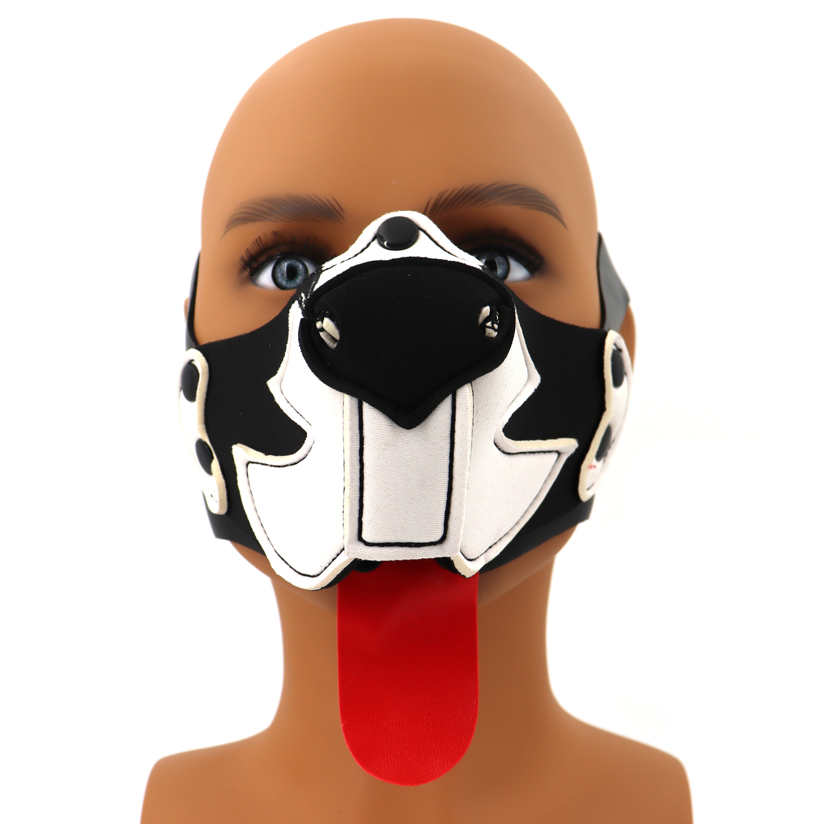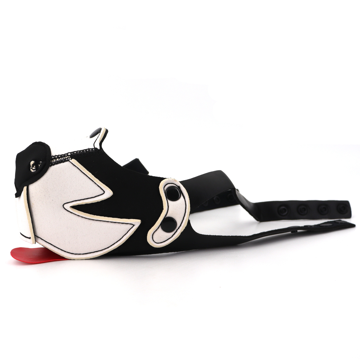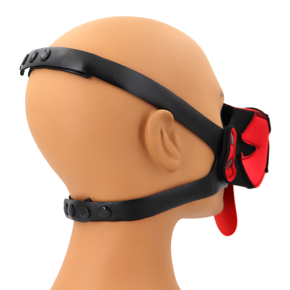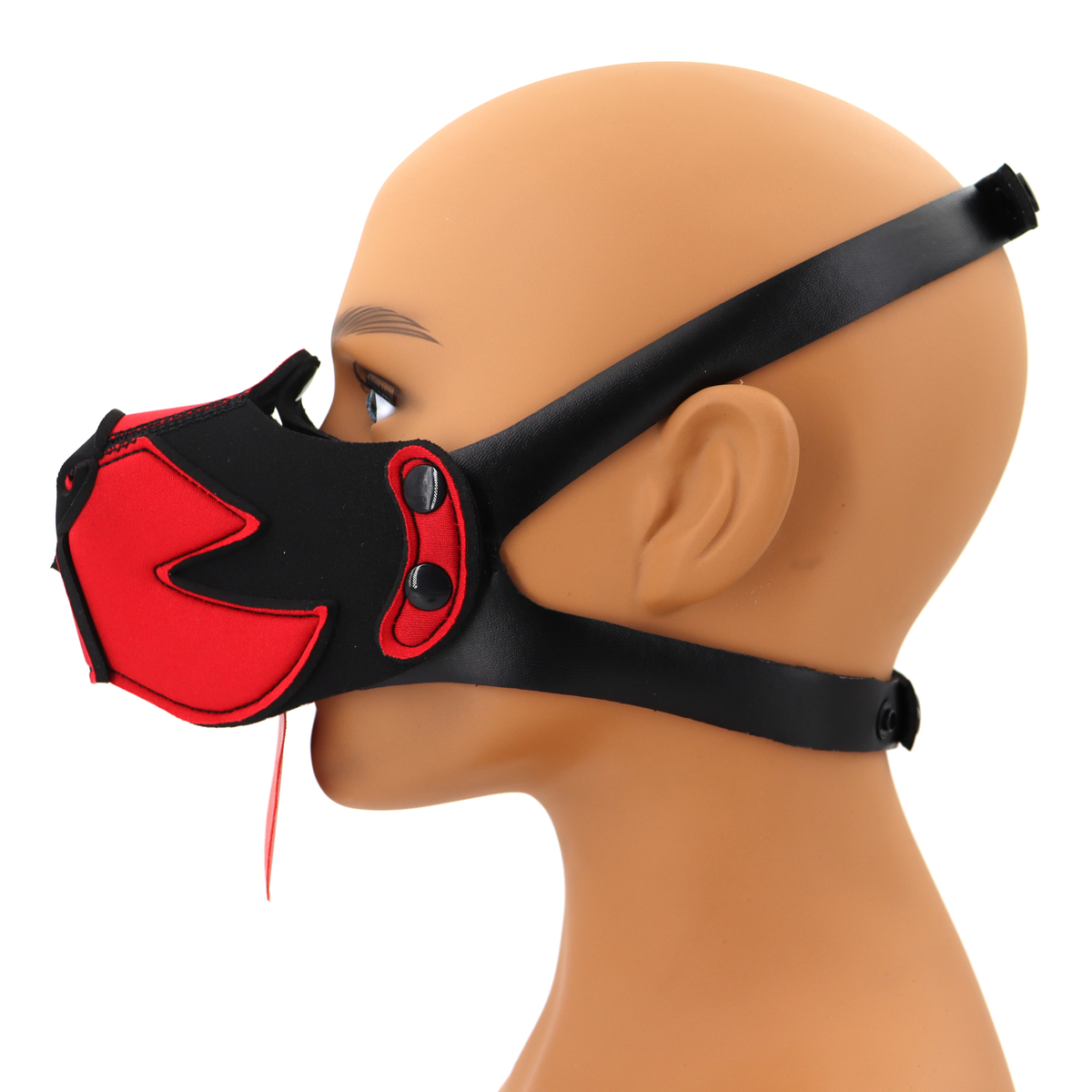 The Puppy Dog Mouth Muzzle is soft and stretchable. No zippers or fuss with cords to fasten. You click it together with the snap on buttons over your head and it fits.The muzzle can be attached without the tongue on one of our neoprene puppy masks we sell separately.The puppy mask is made neoprene material. You can remove the muzzle, because of the press stood this is easy. Because the mask is made of neoprene it closes well around the head, without it feeling loose. It can withstand water and is easy to clean. Because the muzzle is perforated and open at the bottom, it is easy to breathe, and can be worn for a long time.You can even click on the included tongue. The puppy mouth mask is very comfortable to wear.This BDSM half face mask shouldn’t be missing from your collection if you like puppy play.Color: Black + White/RedMaterial: Neoprene + Faux LeatherSize: 13.0 * 8.0 cm/5.12 * 3.15 inchStrap Length: 53-76 cm/20.9-29.9 inch 39-52 cm/15.4-20.5 inchNet Weight: 59 g/0.13 lb/2.08 oz