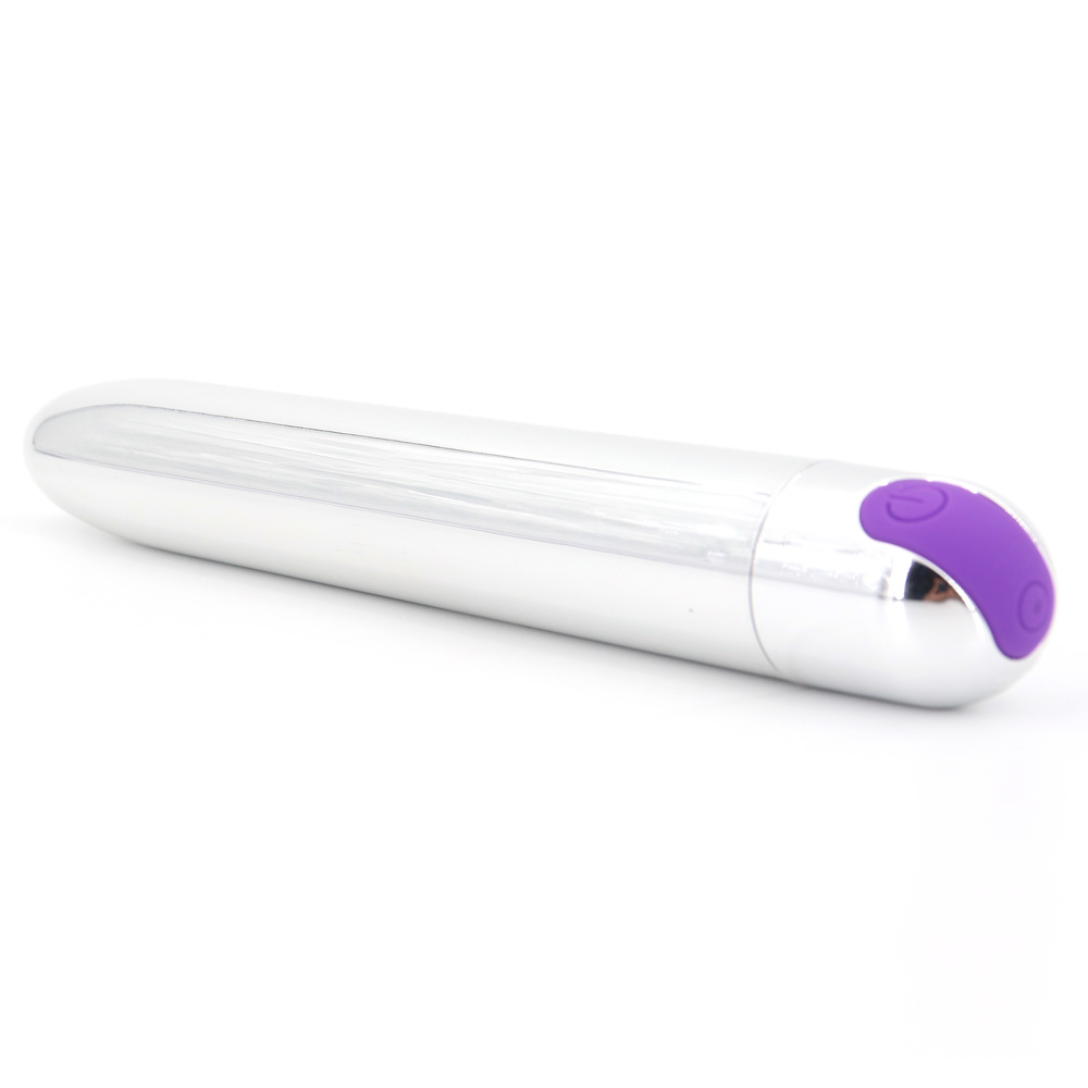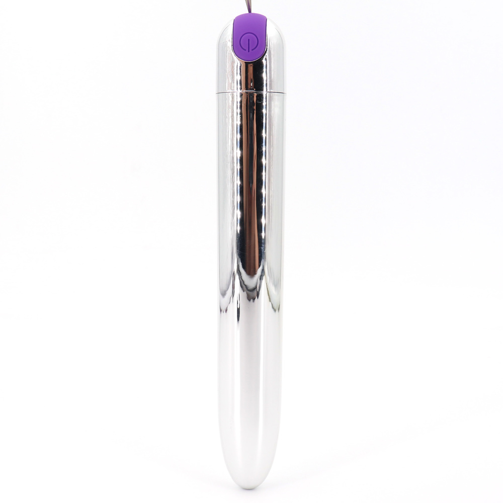 Cue up the first of ten throbbing vibe patterns with a push of silicone button at the base – keep pressing to cycle through the rest. By the way, you can say so long to batteries, because the Silver Bullet is fully USB rechargeable. Charge cord included.