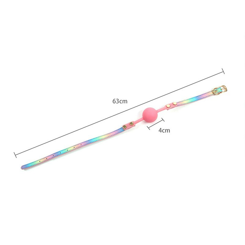 A gag is a device sometimes worn during sexual bondage , BDSM roleplay and adult erotic play. Gags are usually associated with roleplays involving bondage. People derive erotic pleasure from a gag, either in a submissive or dominant role. When combined with other physical restraints, the wearing of a gag can increase the wearer’s sense of helplessness and anxiety level within a BDSM scene, by depriving them of a means to influence the progress of a sexual activity through speech. Some people enjoy the feeling of surrendering the ability to speak to another person in an activity.Function: Fixation Bondage Mouth GagColor: ColorfulSize: 63.0 * 1.5 cm/24.82 * 0.59 inchBall Dia:4.2 cm/1.65 inchNet Weight: 150 g/0.33 lb/5.29 ozPower: NoMaterial: SiliconePackage: OPP Bag